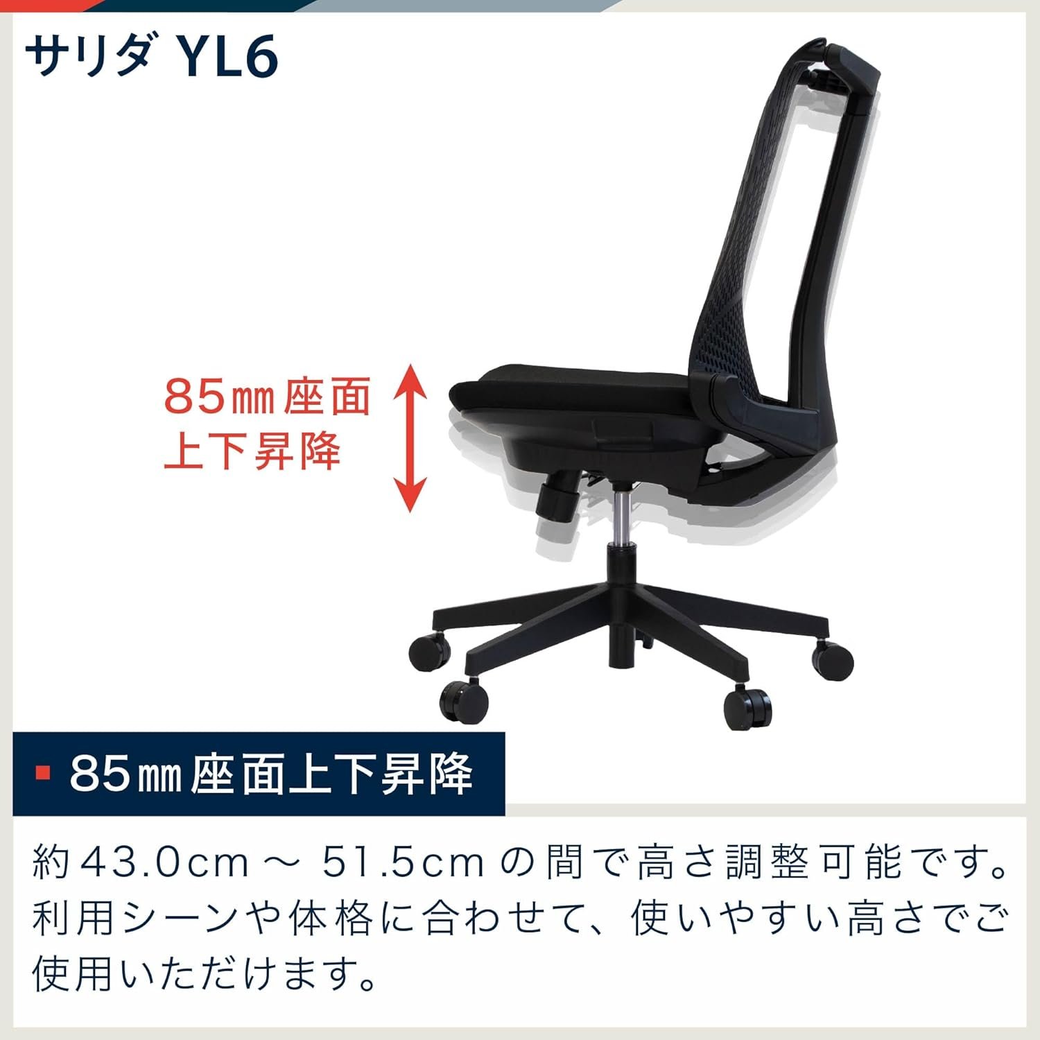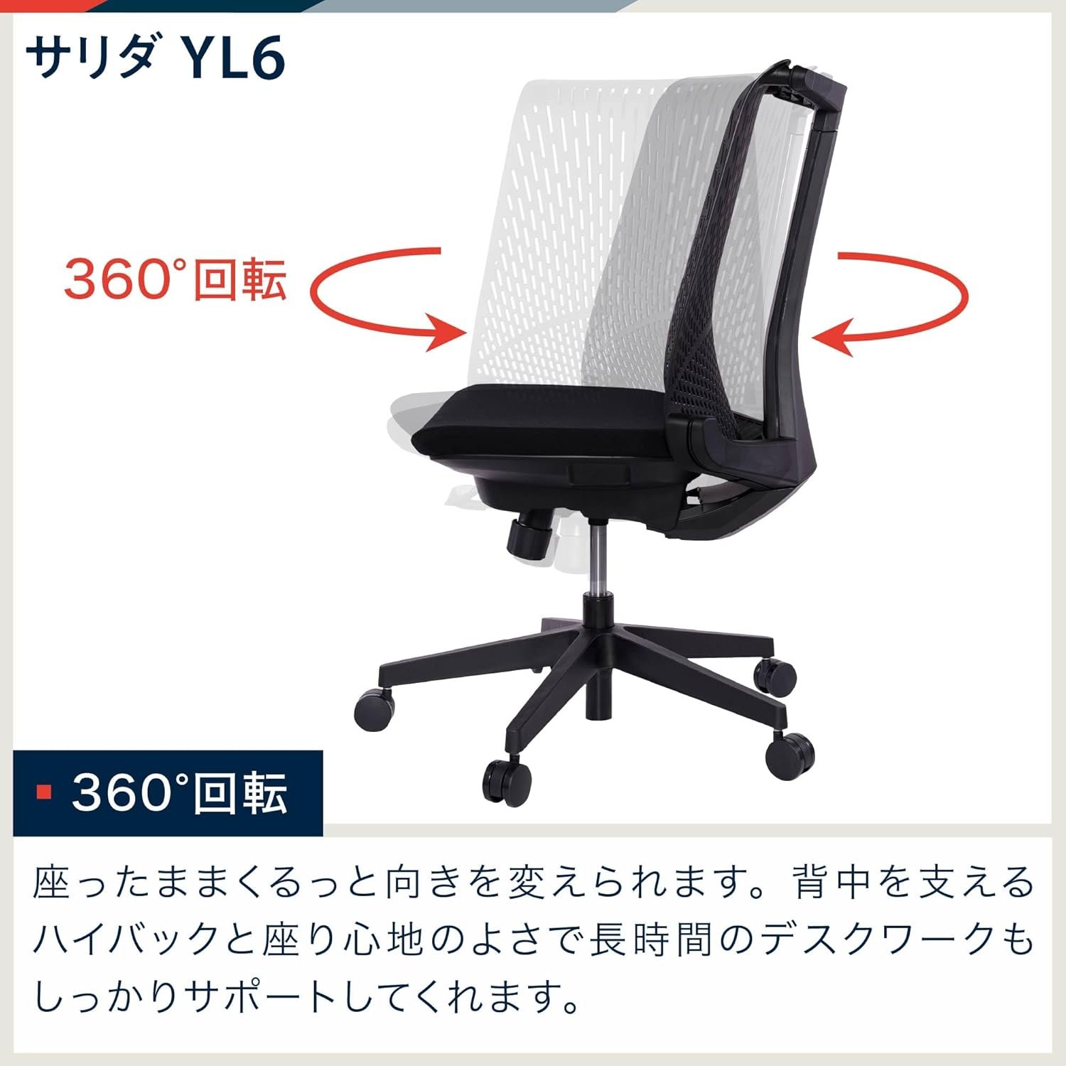 [ITOKI SALIDA YL6] 10,000を超える販売アイテムを持つ人気のシリーズ。背中とともに移動し、快適な座り込み体験のために専用のシートを使用する同期ロッキングシステム。デスクワークの負担を軽減します