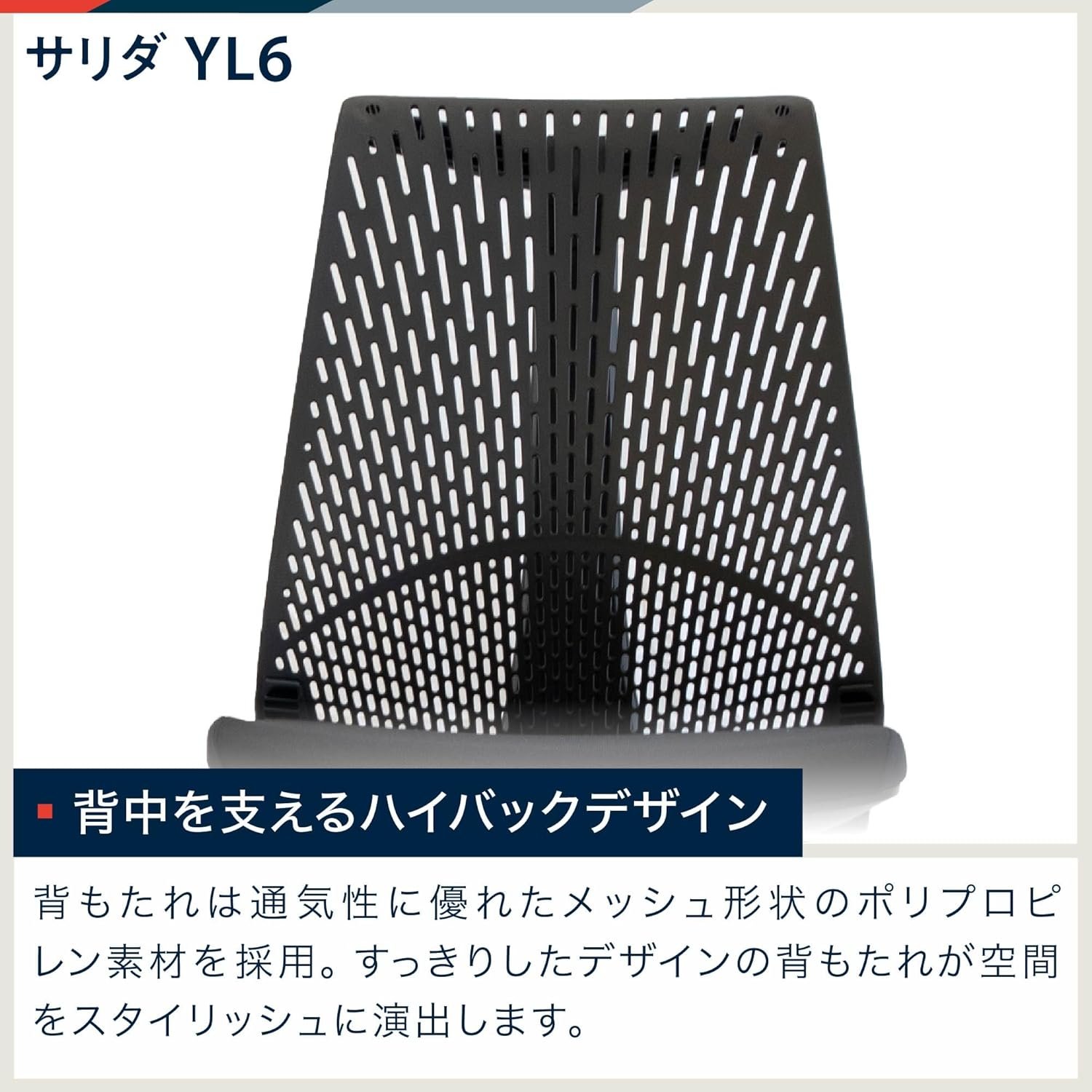 背中の高いサポート:背面は通気性のあるメッシュ型ポリプロピレン材料で作られています。クリーンバックデザインは、スペースにスタイルを追加します