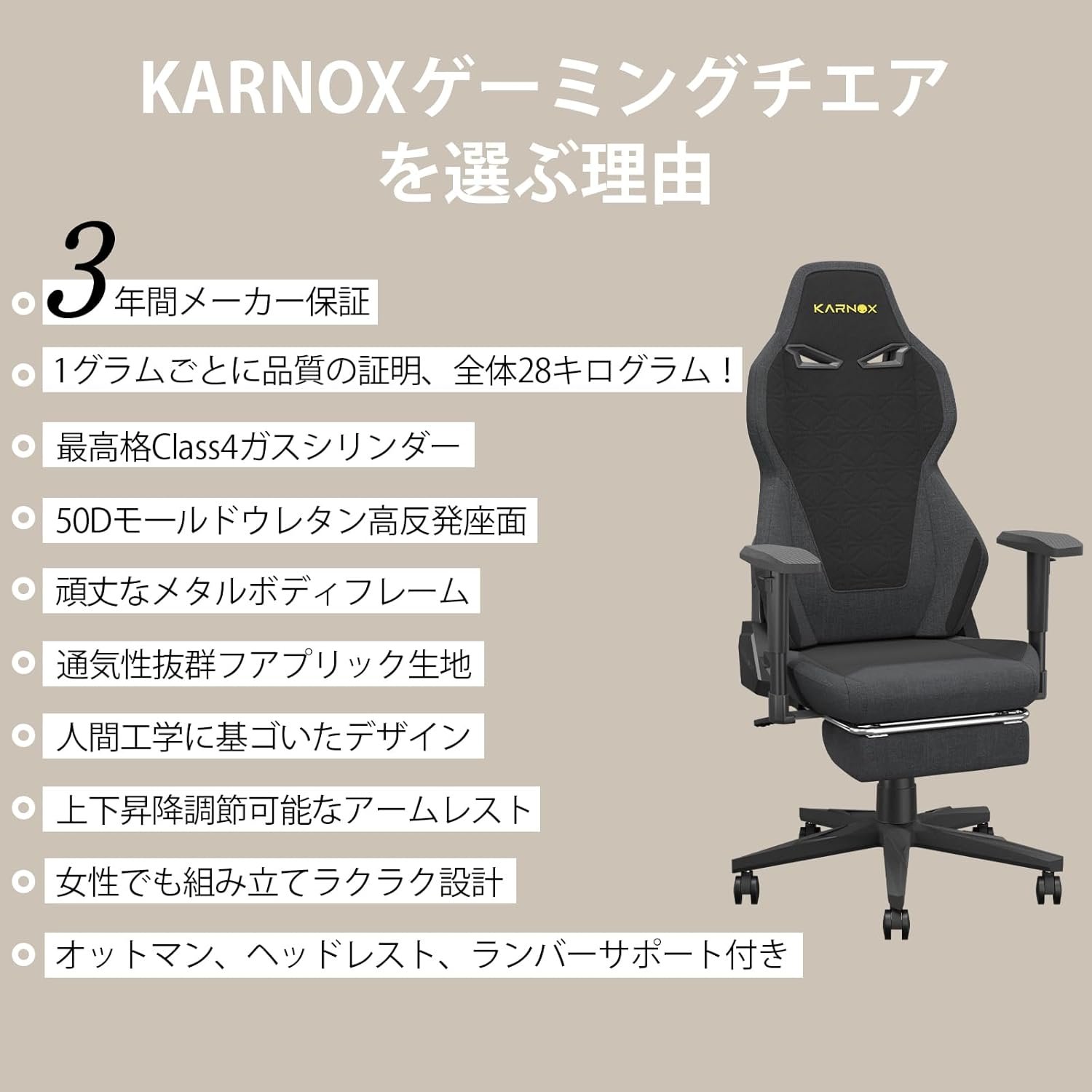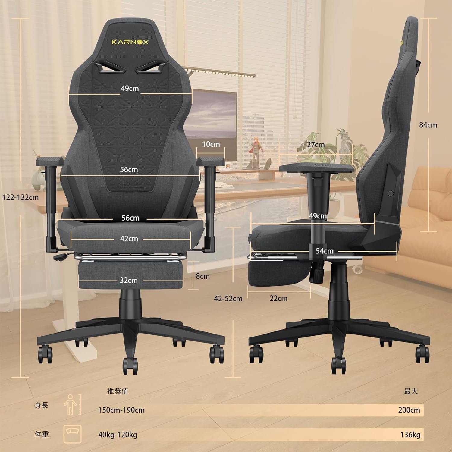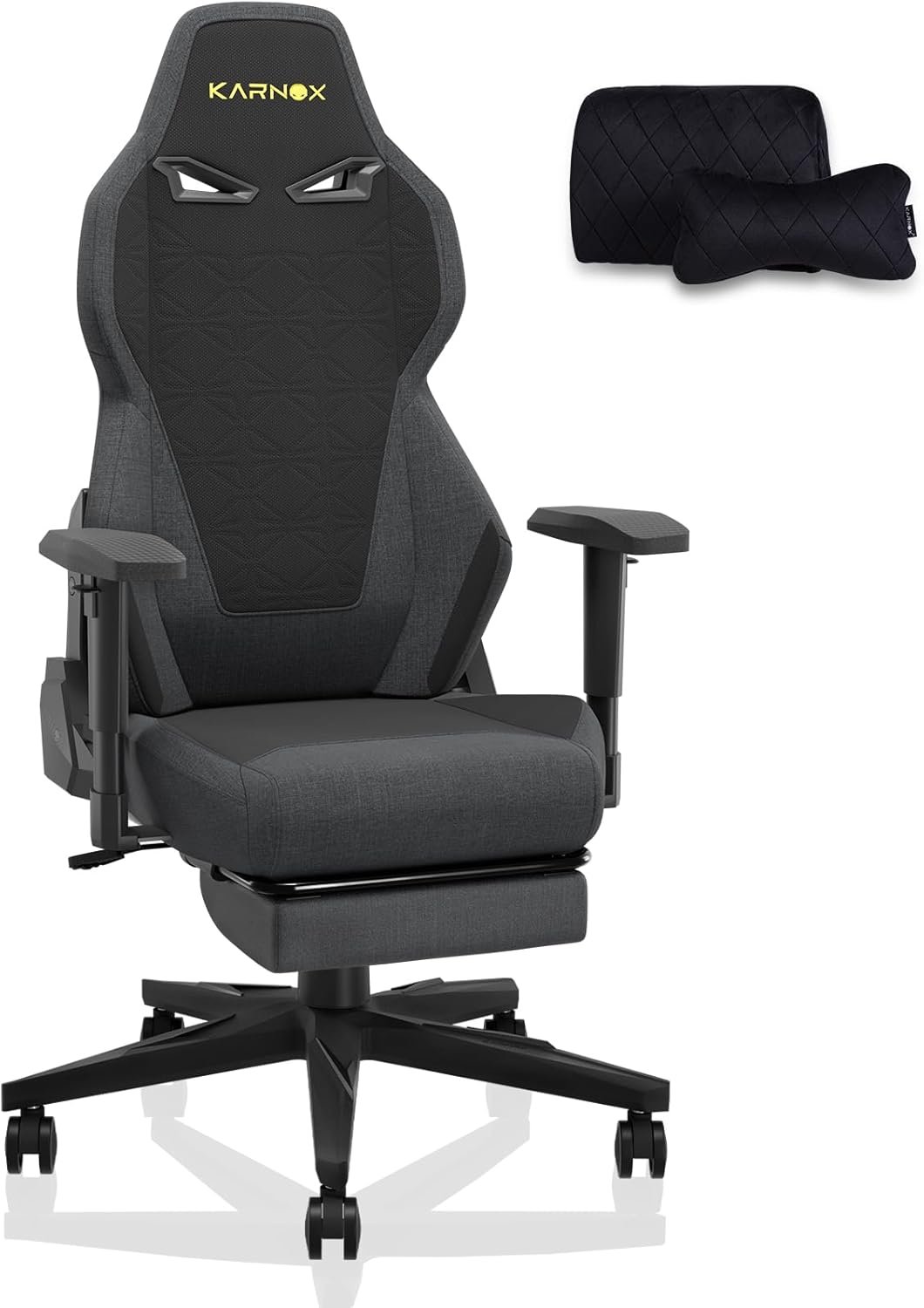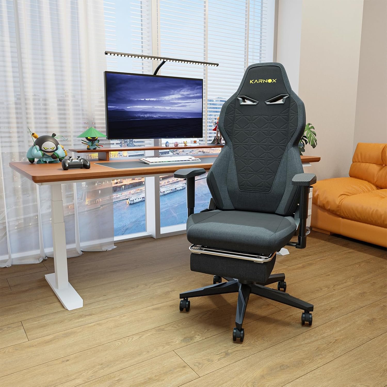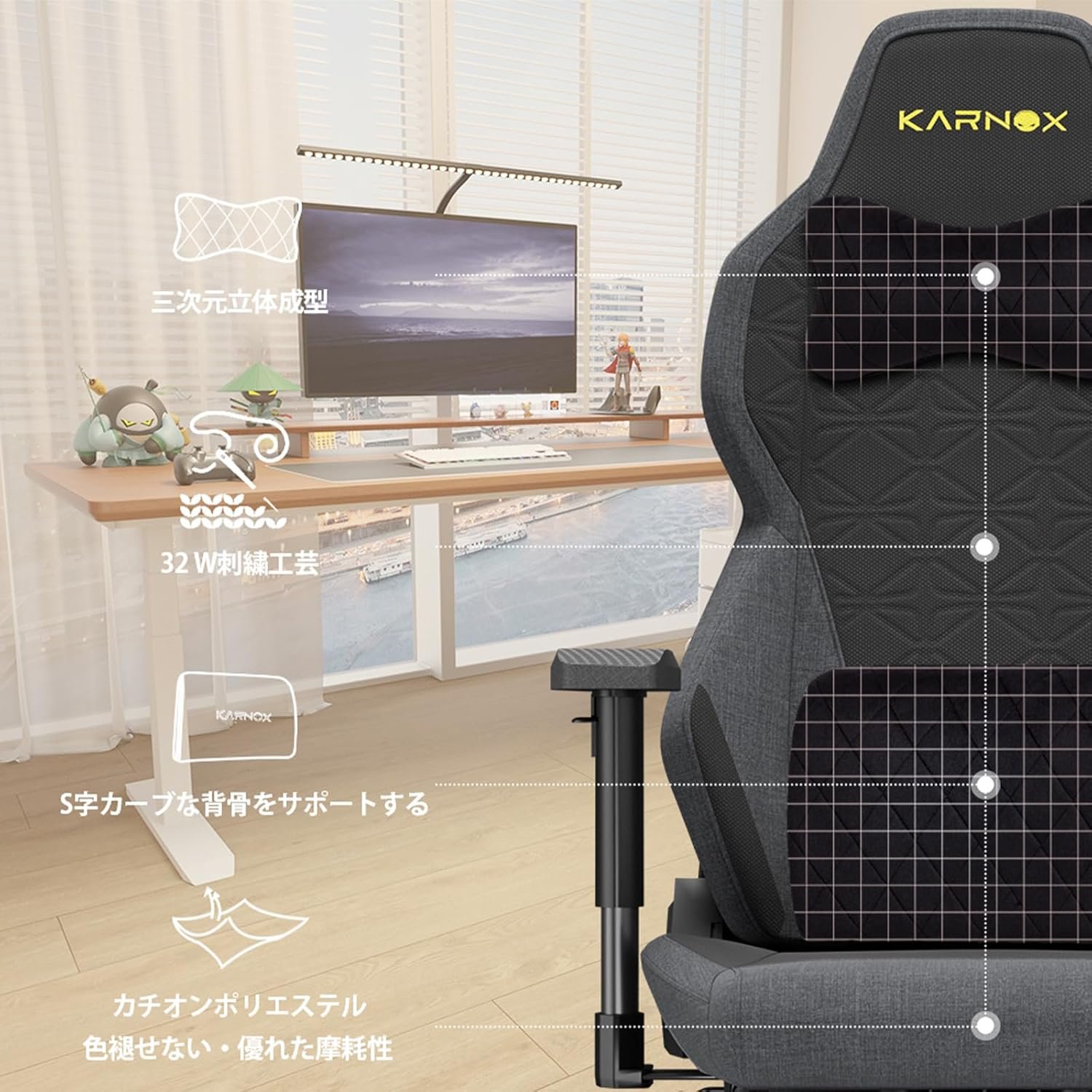 Karnoxゲームチェア、PCチェア、ハイバック、調整可能な背もたれ、人間工学に基づいたデザイン、90-155度リクライニング機能、三角ホールゲームチェア、ファブリック、グレー&ブラック
