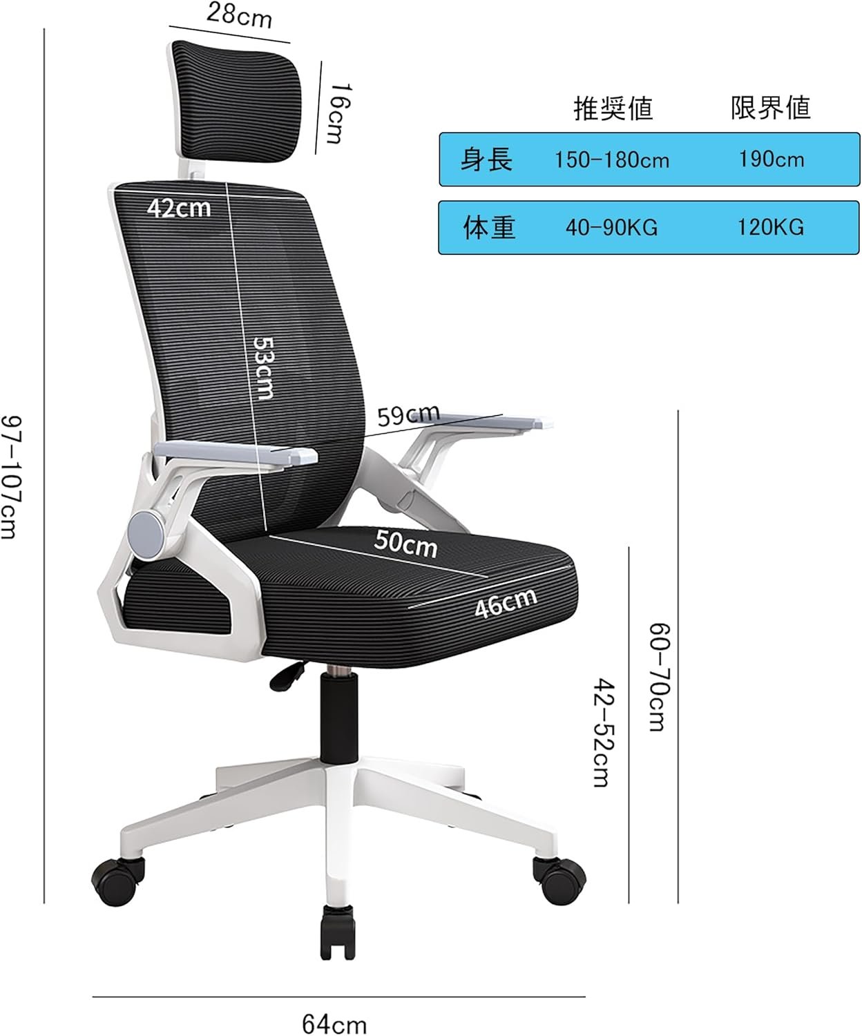 製品仕様:サイズ:幅19.7 x長さ18.1 x高さ38.2-42.1インチ(50 x 46 x 97-107 cm);シートの高さ:16.5-20.Productパッケージサイズ:23.6 x 20.5 x 9.8インチ(60 x 52 x 25 cm);製品パッケージの重量:23