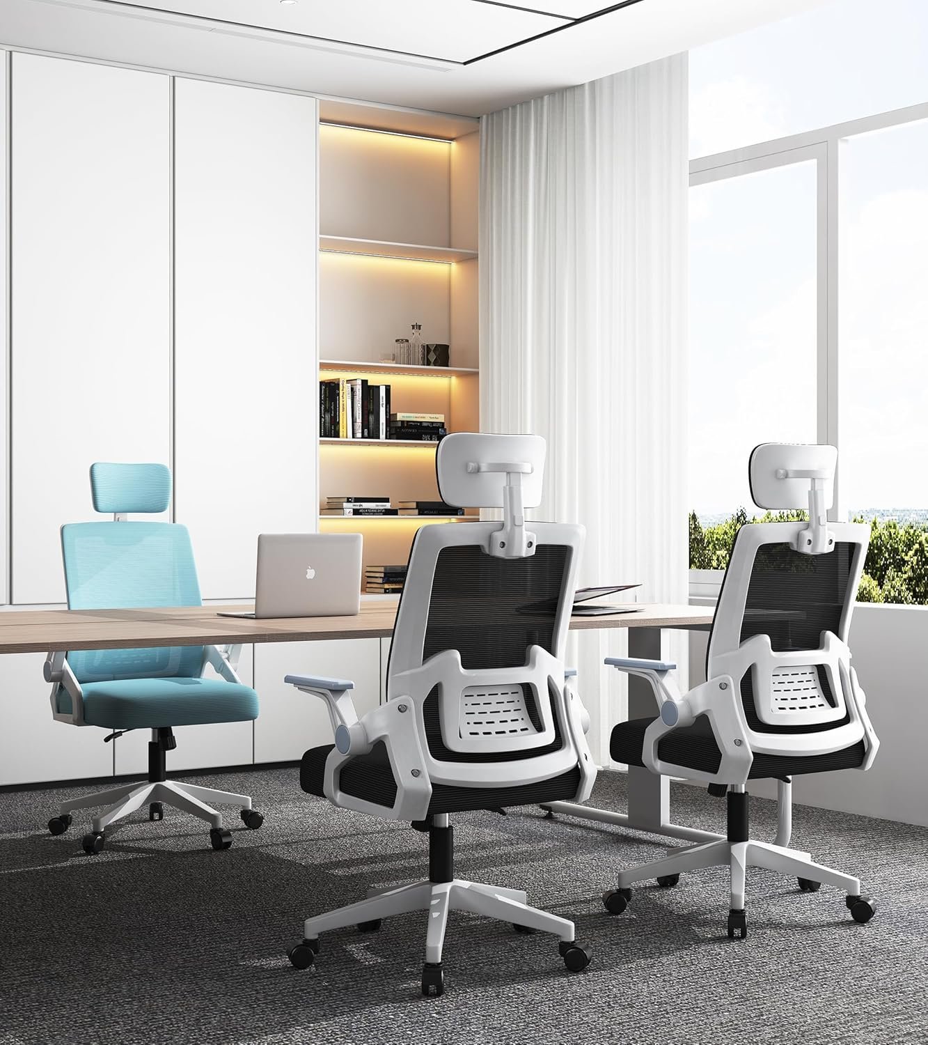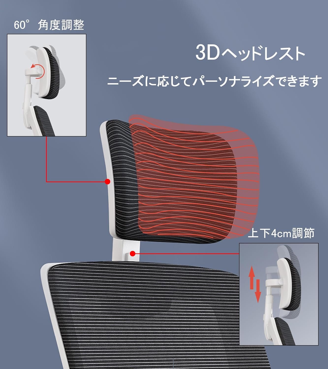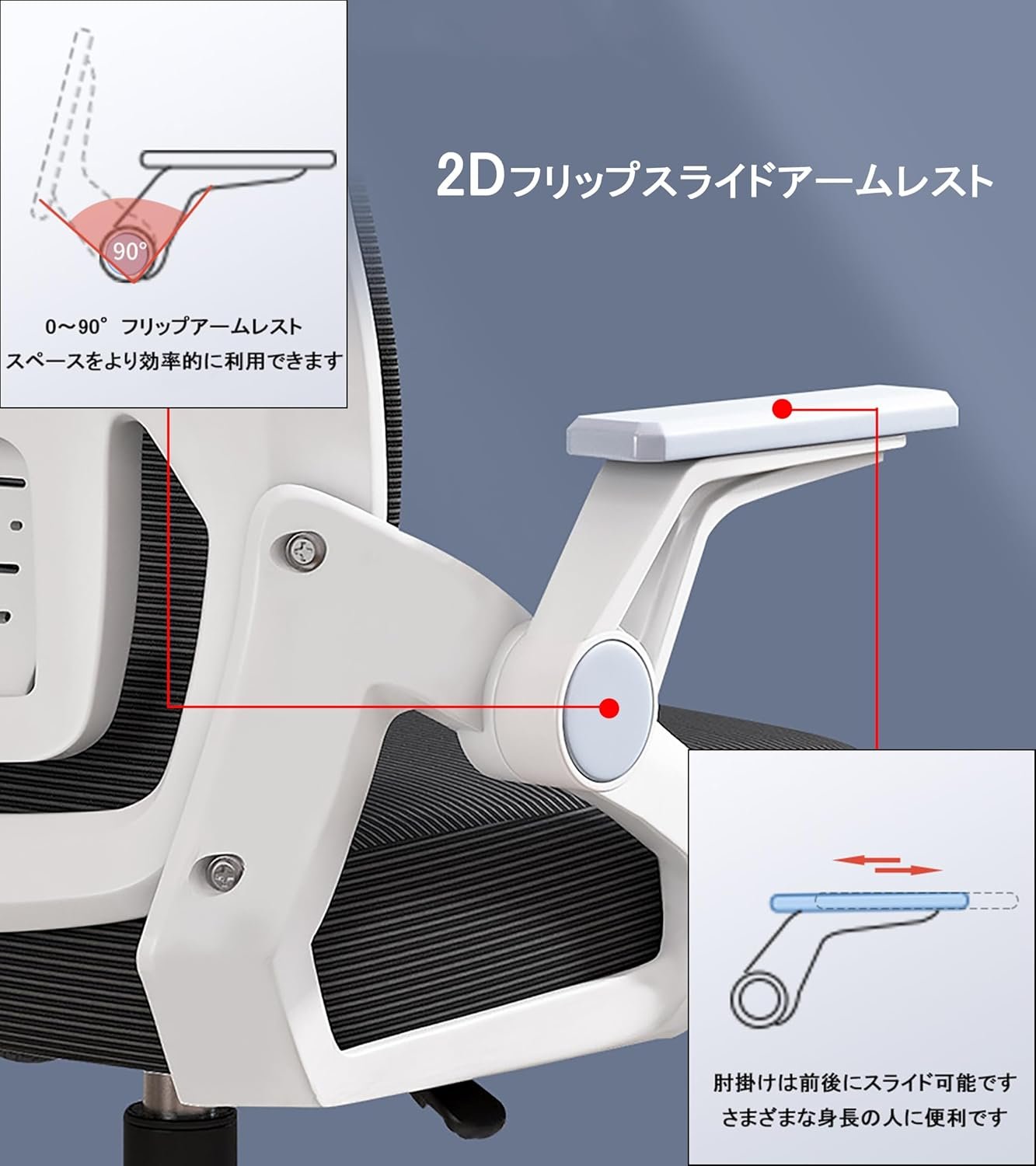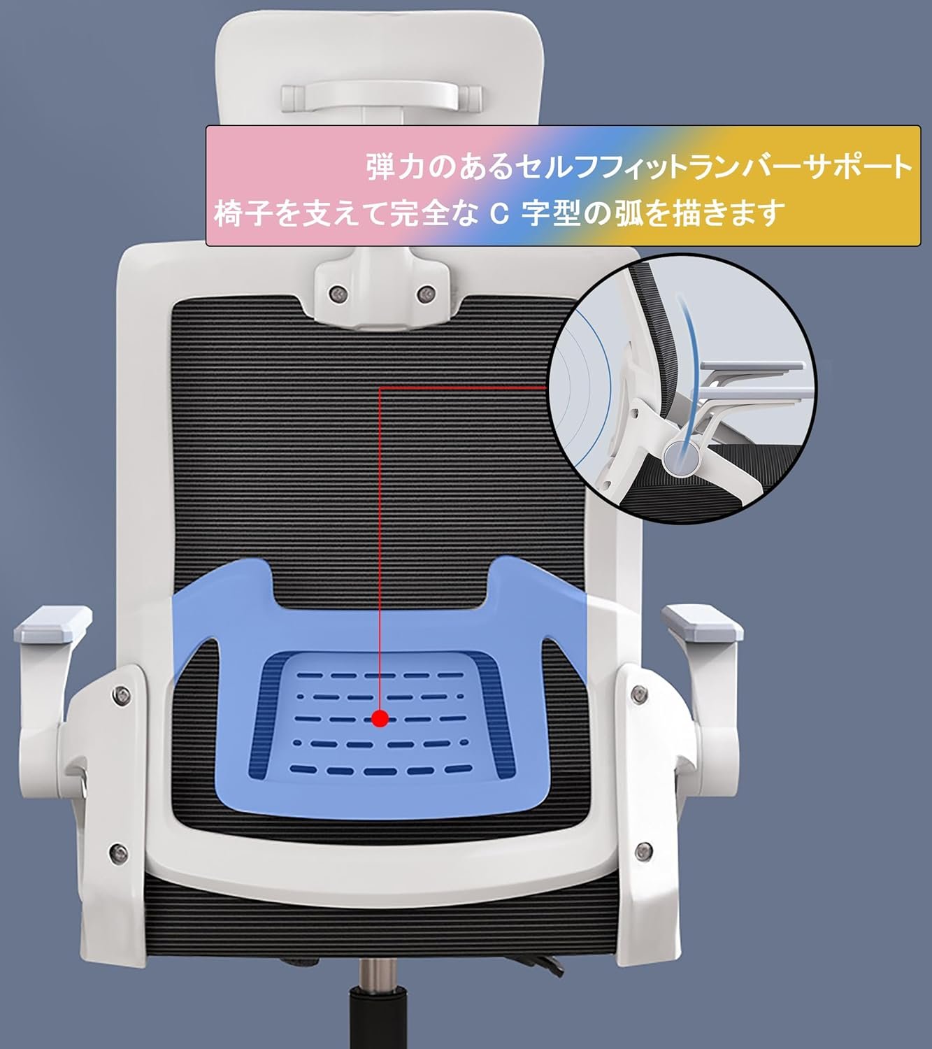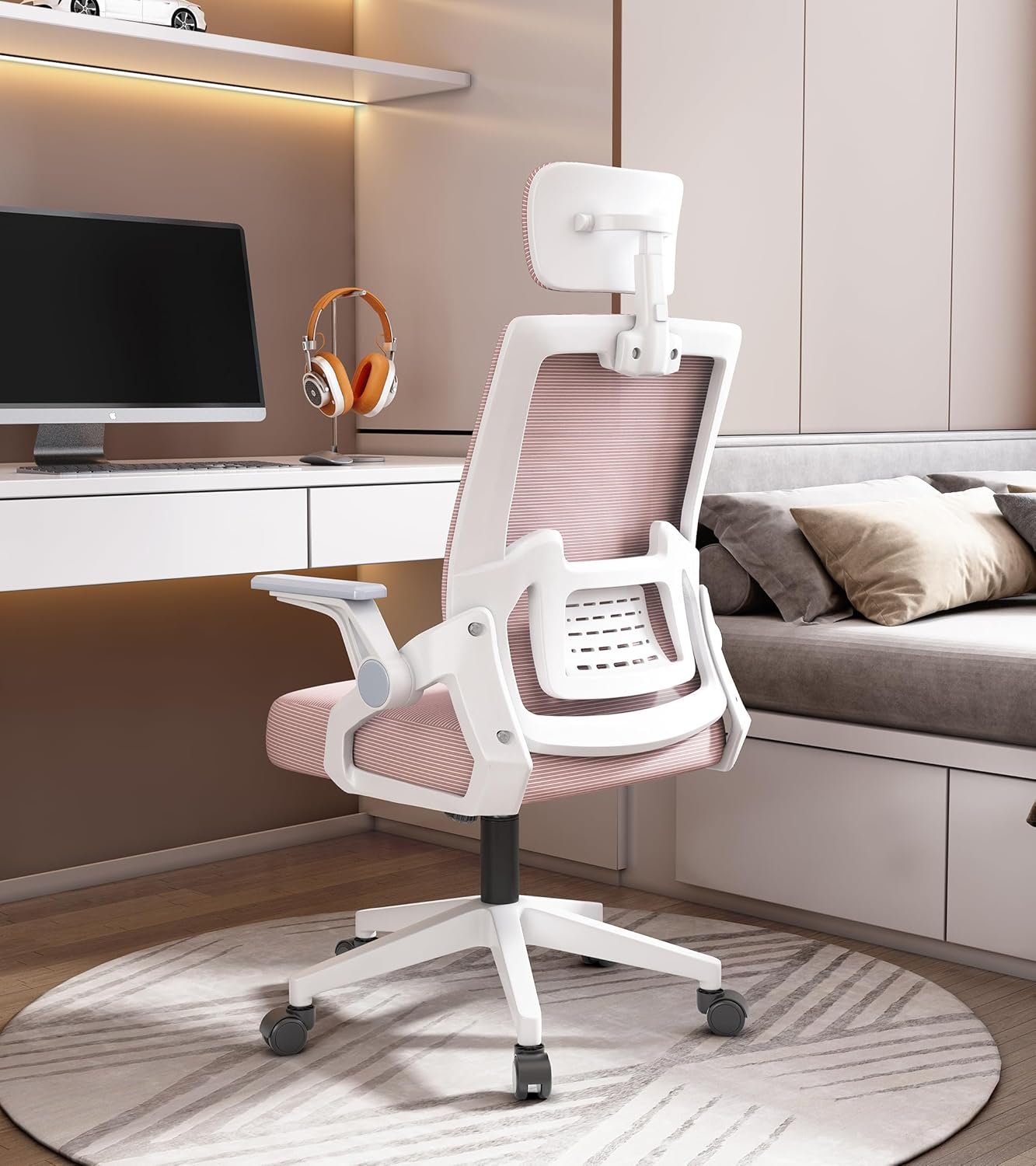 Kohime Office Chair Scohime Mesh Chair人間工学に基づいたテレワークチェア疲労腰椎サポートフリップアップアームレスト3Dヘッドレスト(ピンクと白)
