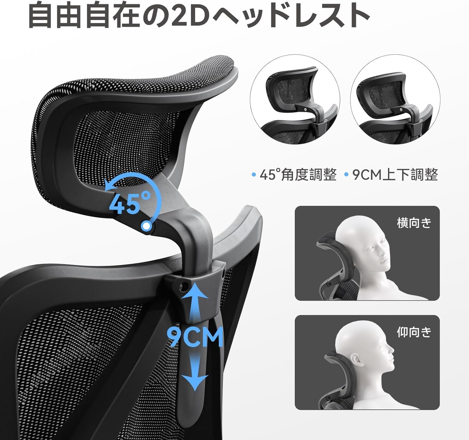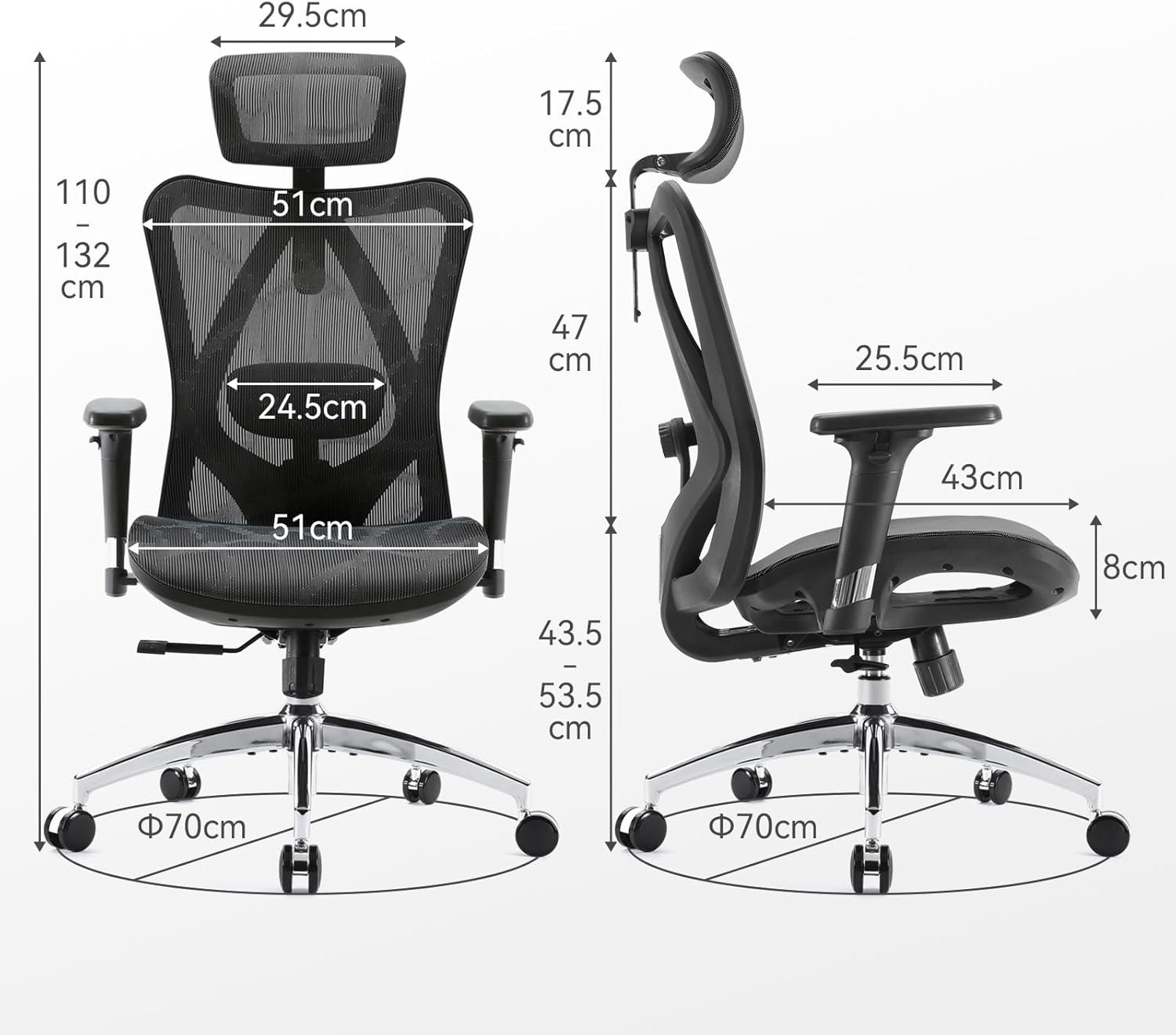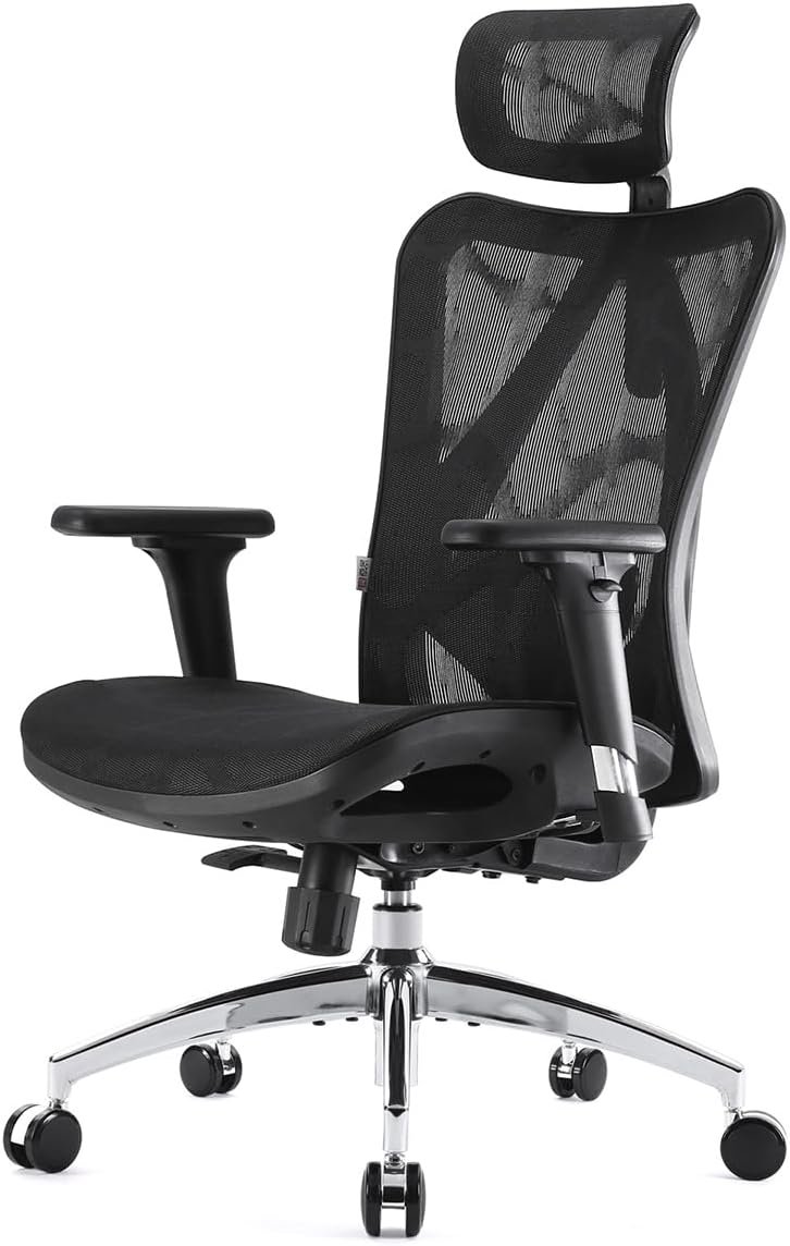 Sihoo M57メッシュチェア、オフィスチェア、人間工学に基づいた椅子、疲労なし、デスクチェア、S字型の背もたれ、3Dアームレスト、可動腰椎サポート、126°リクライニング、2Dヘッドレスト、PCチェア、メッシュチェア、コンピューターチェア、