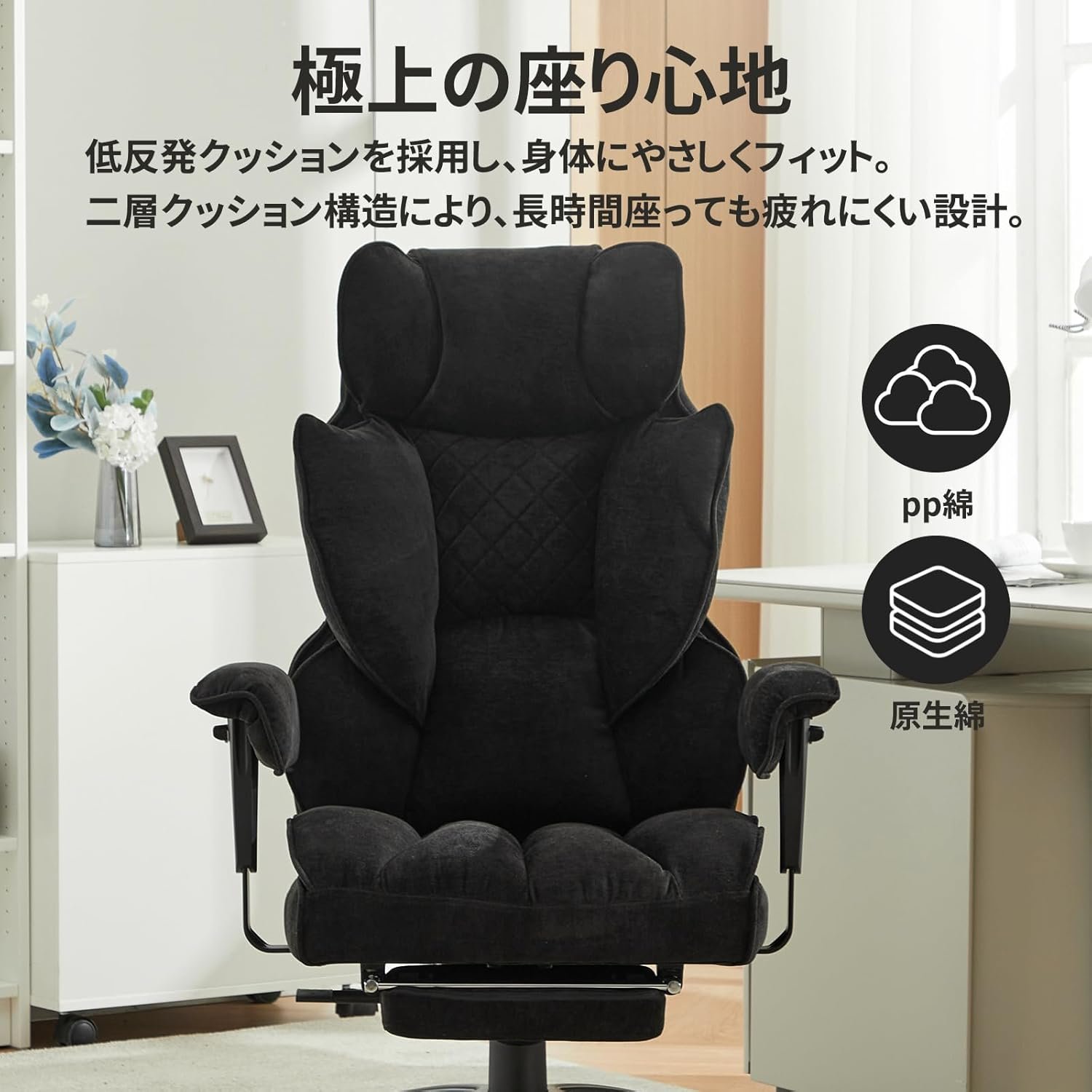 (通気性のある生地素材)椅子の表面は、非常に通気性の高い生地で作られています。それは滑らかなテクスチャーを持ち、息苦しさに耐性があり、季節に関係なく快適な座り体験を提供します。柔らかいクッションとボディハグのデザインにより、長時間の仕事やゲームの後でも疲れるのが難しくなります。自然で温かいテクスチャーは、部屋の装飾と自然に溶けます。注:この製品は、光と向きの角度に応じてより白く見える場合がある短いパイルフランネルファブリックで作られています。これは素材の特徴であり、欠陥ではありません。髪を精製することで、オリジナルの外観に復元します