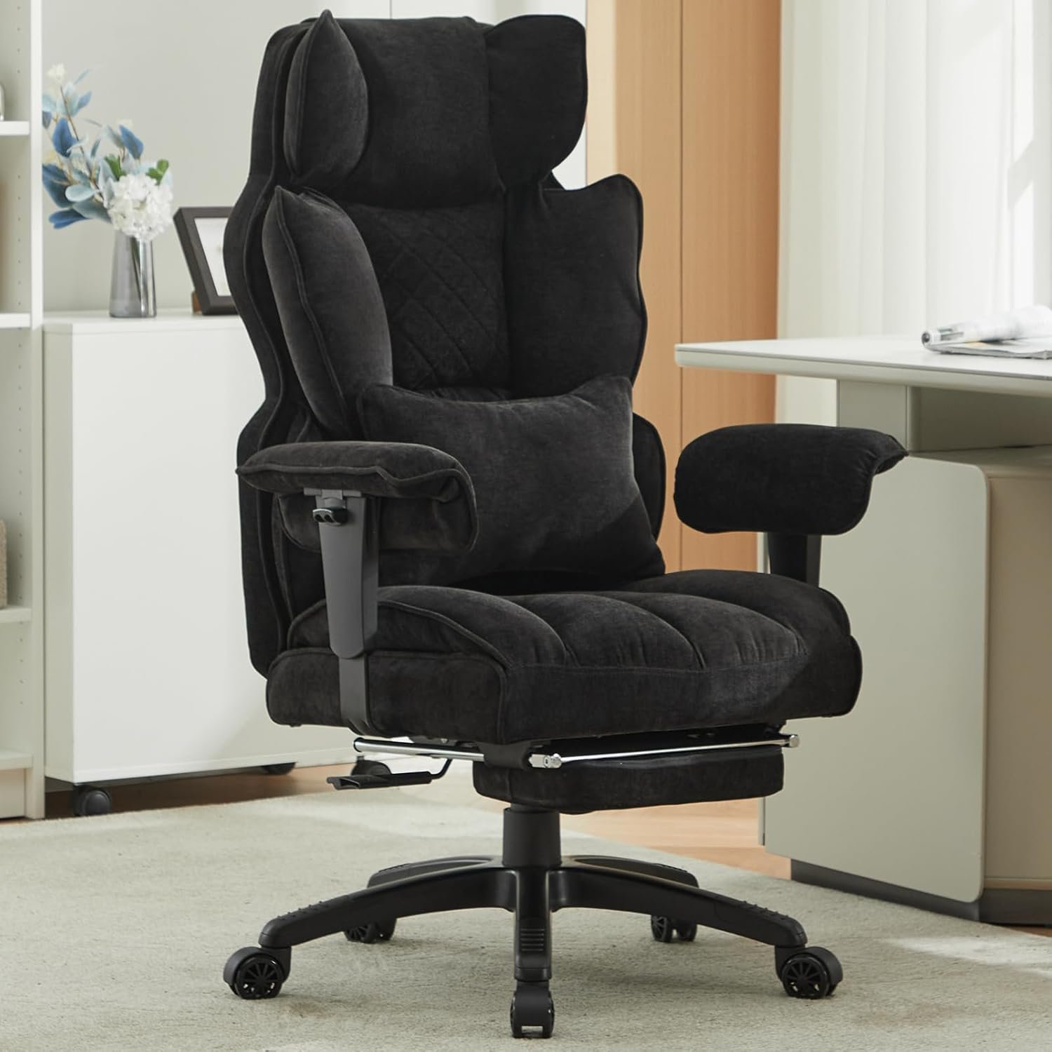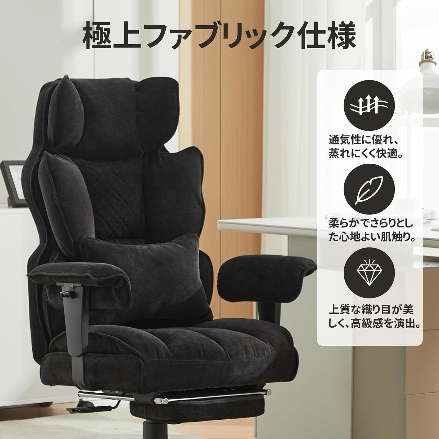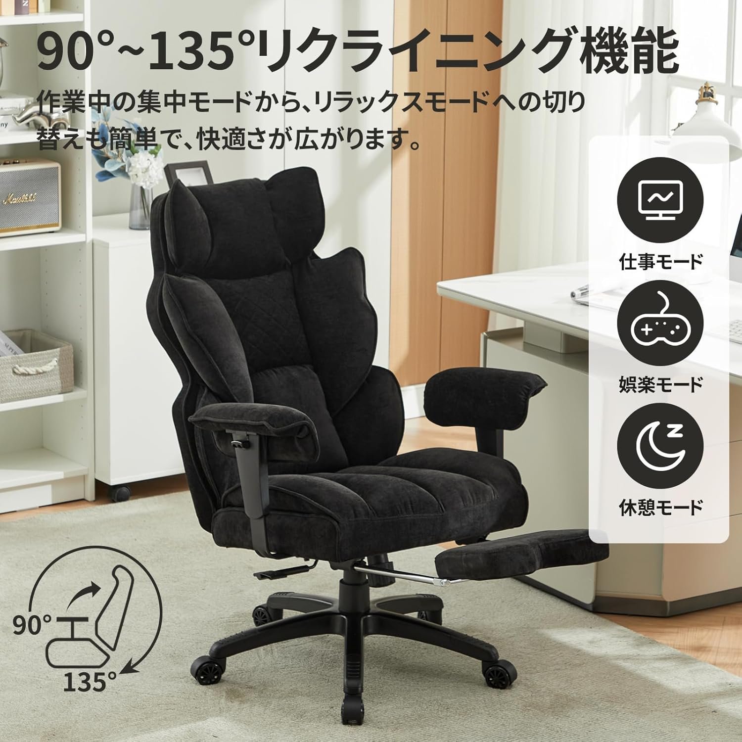 Skye Gaming Chair、広々としたシート、通気性、生地、布地、メモリフォームクッション、135°リクライニング&腰部サポート、396.7ポンド(180 kg)、デスクチェア、オフィスチェア、ホームワーク、社長椅子(ファブリック)