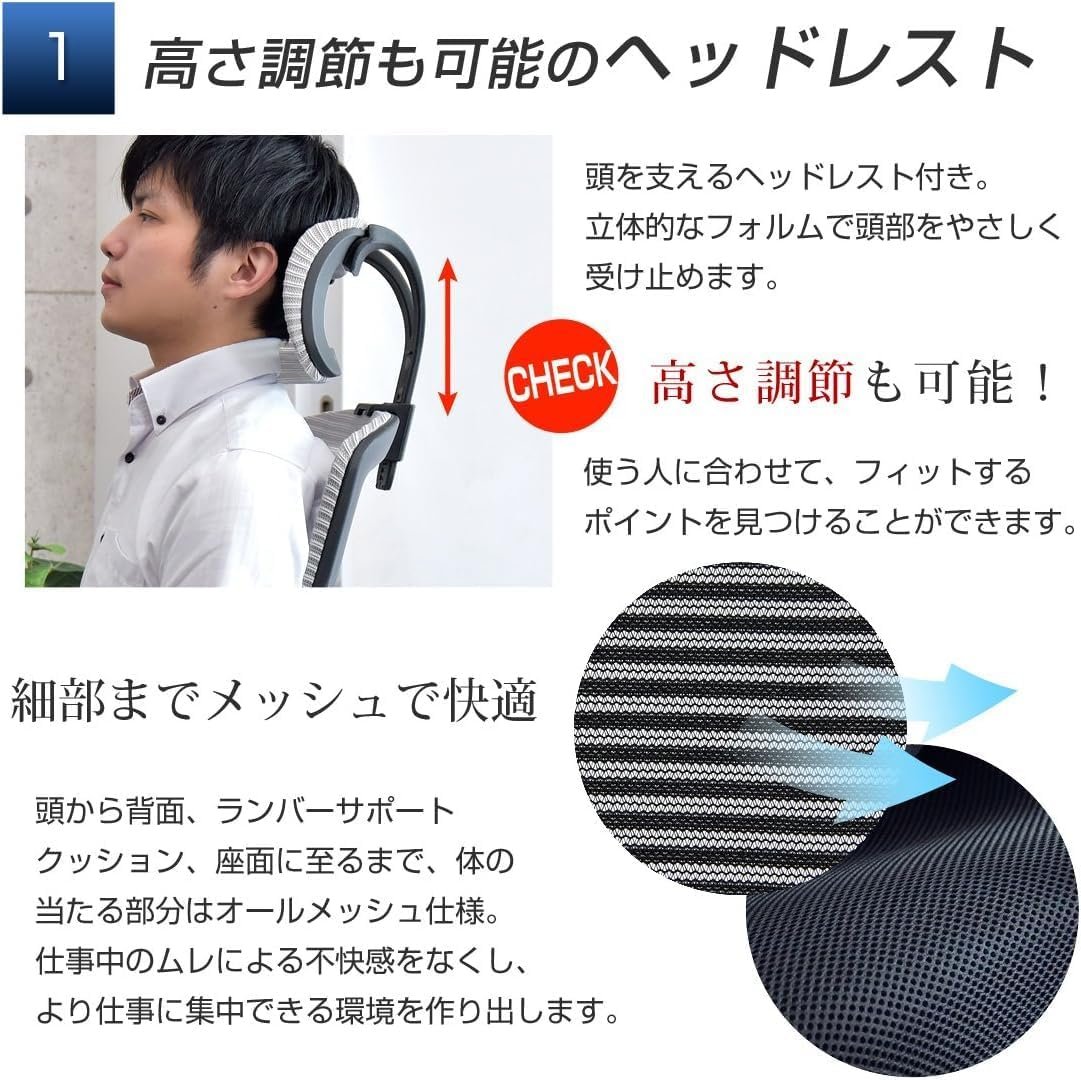 延長期間のデスクワークをサポートするための多くの機能を備えています。Lumbarサポートとロック機能を組み込み、バックと非常に調整可能なヘッドレストをサポートします。