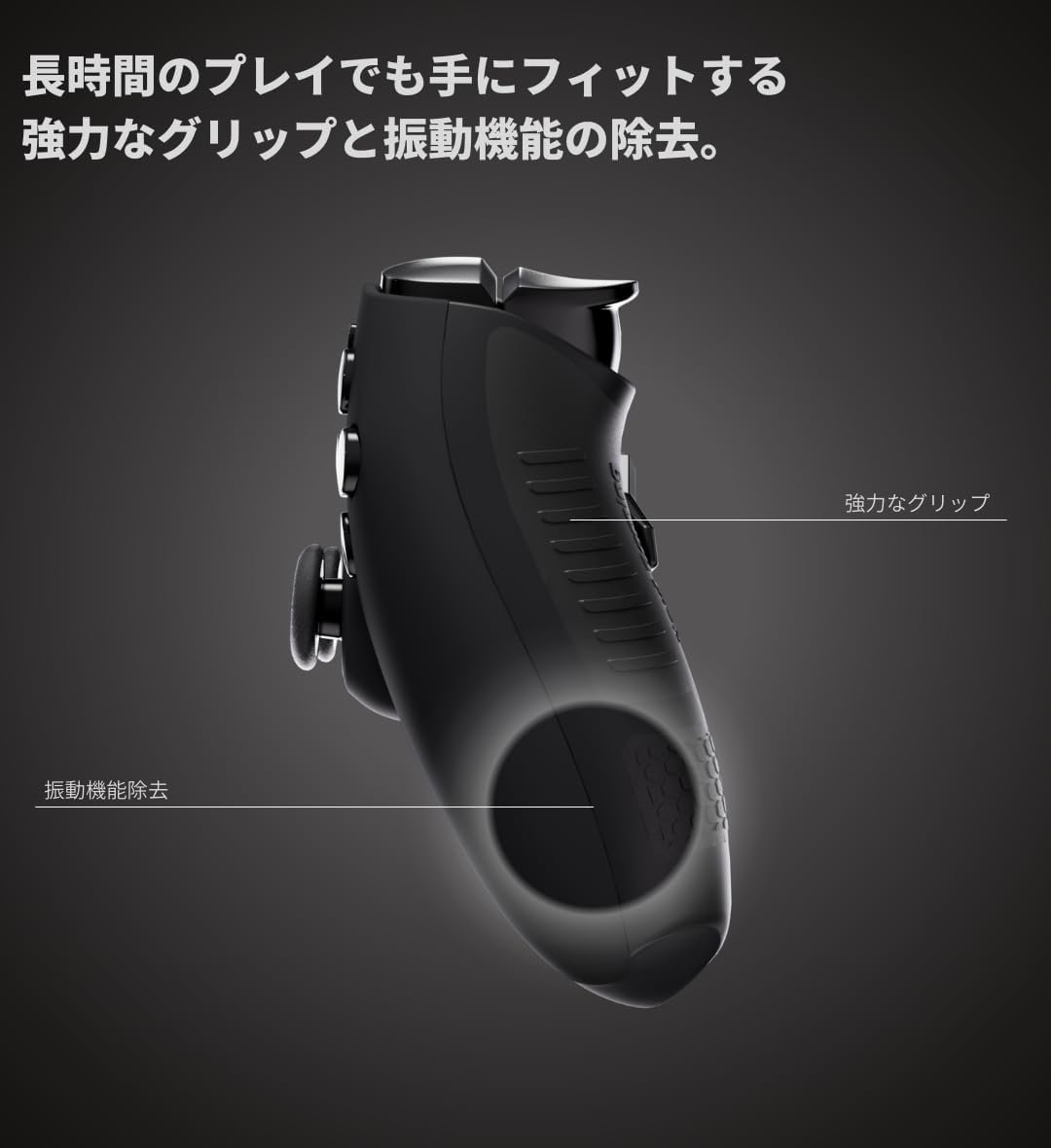 強力なグリップ:長時間のプレイでも手にフィットする強力なグリップを採用。快適なホールド感を提供し、ゲームに集中できます。