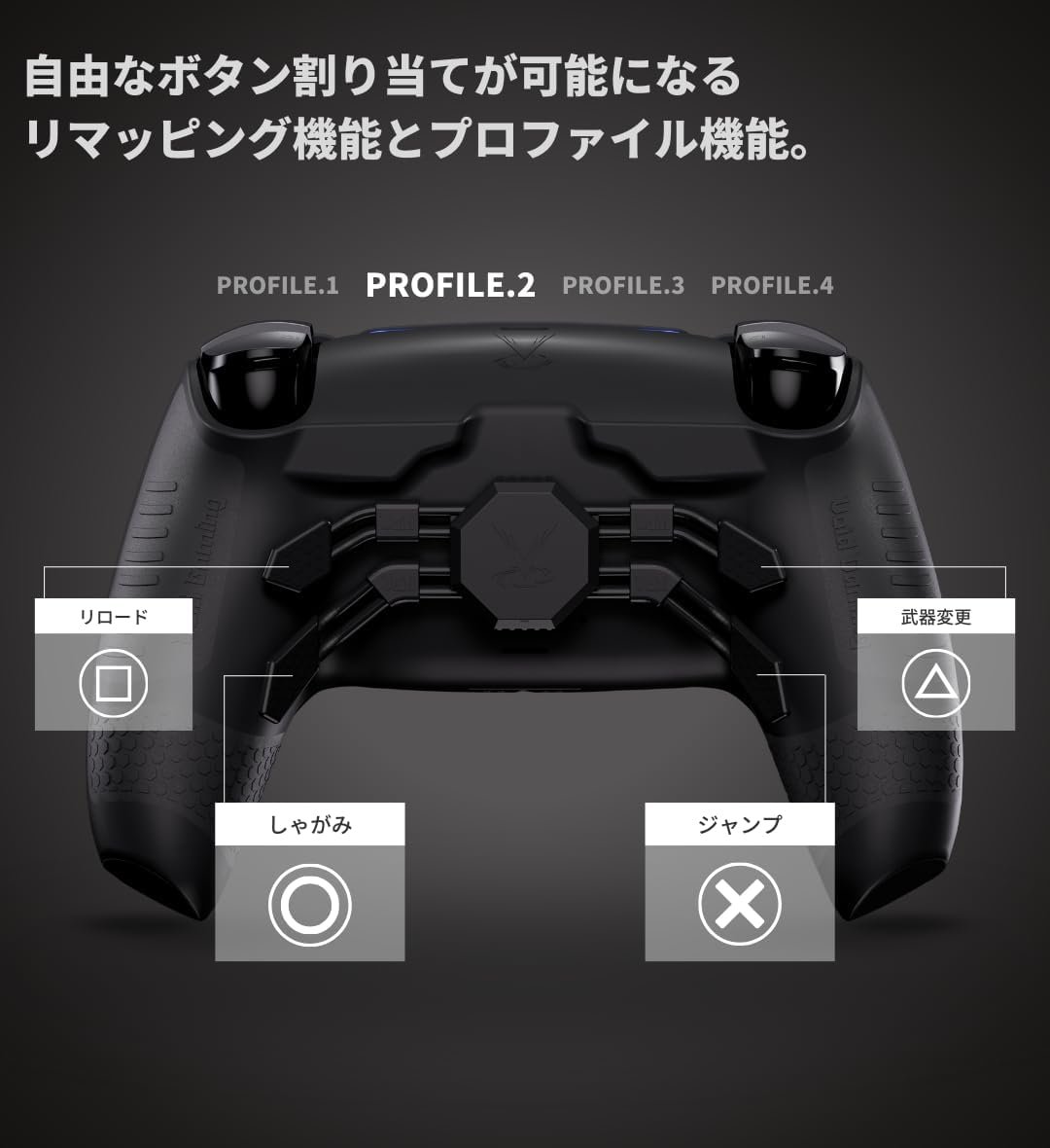 [Profile Function] 背面パドルのボタン割り当て設定を記憶・切り替えできる機能。 FPS やアクション ゲーム、武器、スタイルのセットアップの手間を省き、スムーズなゲーム体験を実現します。