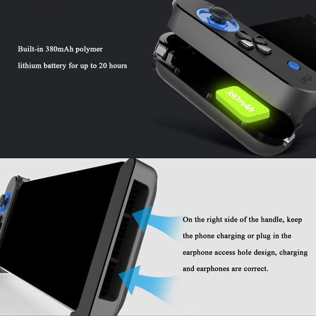 ワイヤレスBluetoothワイヤレスゲームコントローラー、ポータブルゲームジョイスティックハンドル、iOS/Android iPhone/iPad Android/iOS用の格納式ブラケット充電ケーブル、ブラック