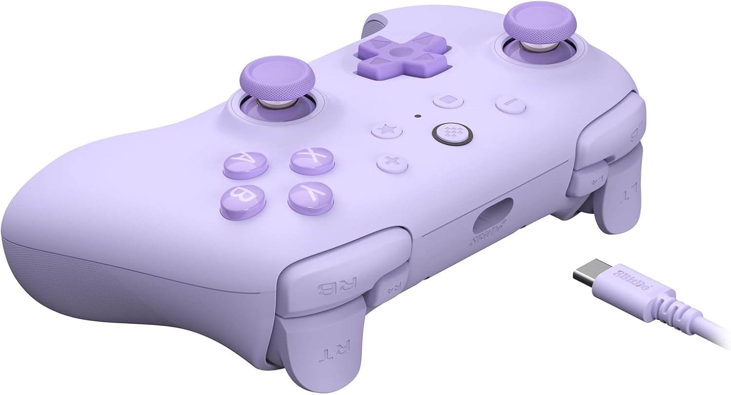 8bitdo ultimate 2c windows pcおよびandroid用有線コントローラー。1000hzポーリングレート、ホール効果ジョイスティックとホール l4/r4バンパーを搭載(紫)
