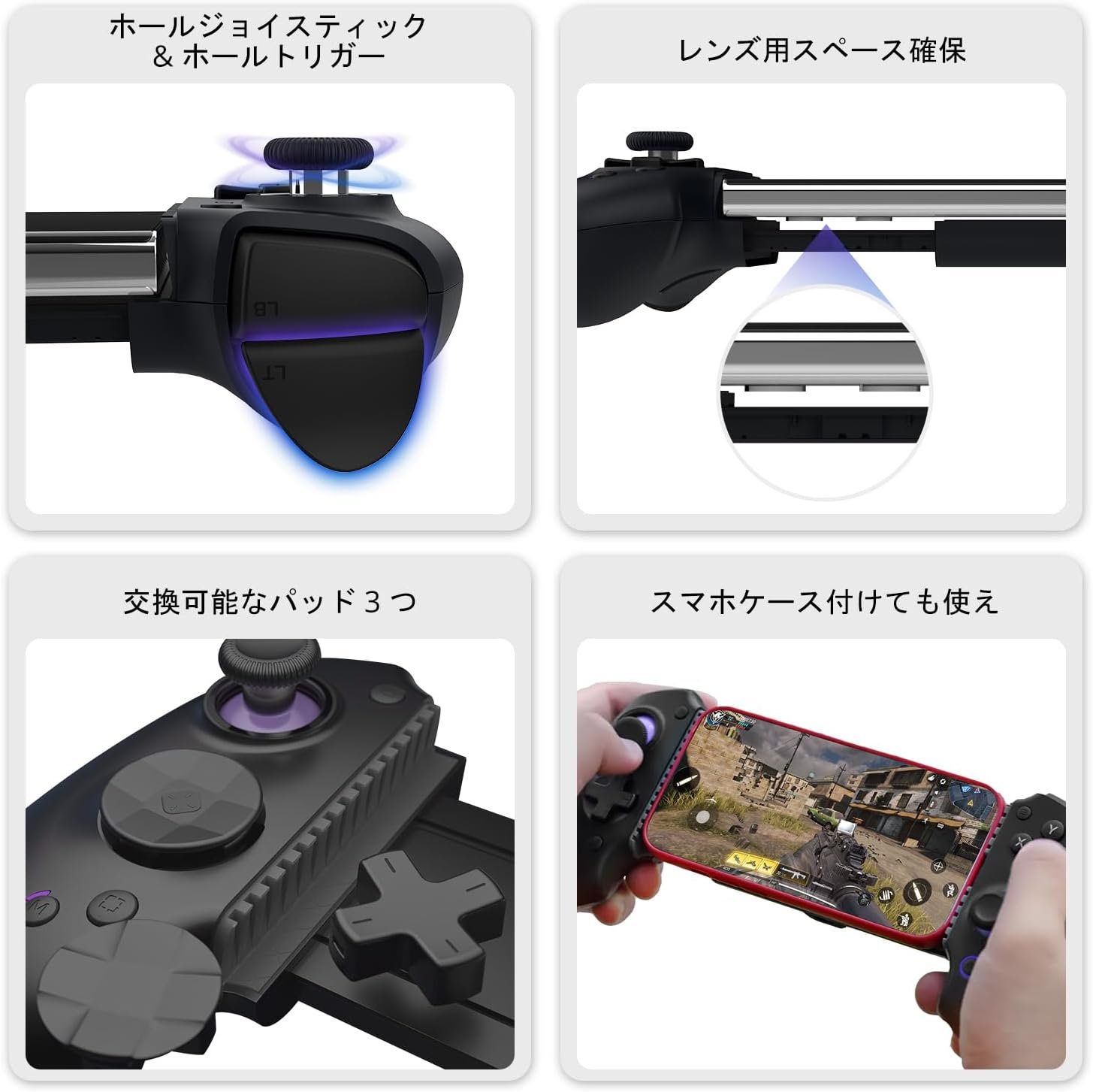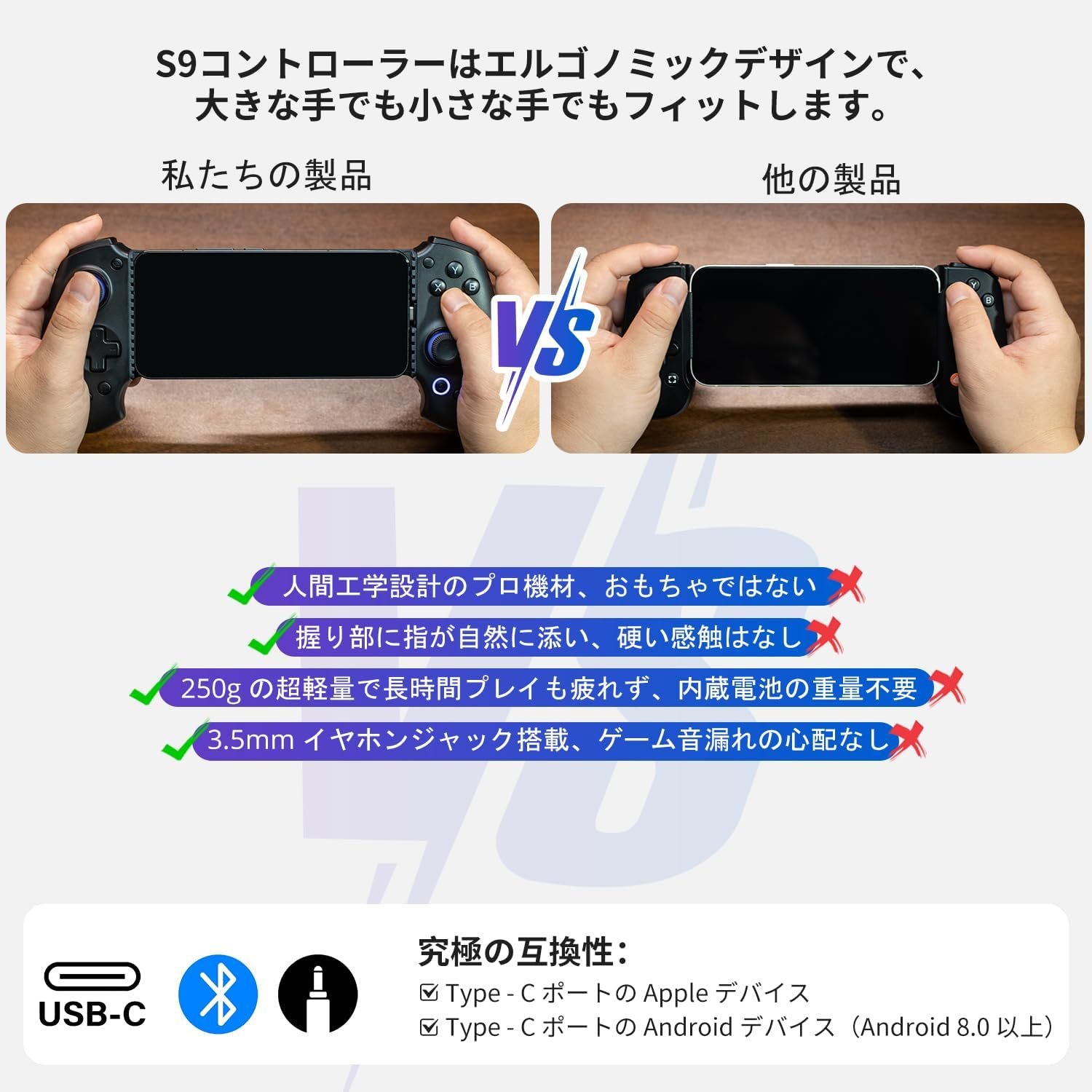 [Premium Hardware Features] ホールのジョイスティックとホールのトリガー、デュアルローターモーター、6軸ジャイロ、および比類のないゲームセッション用のプログラム可能なバックボタンを装備しています。 [Ergonomic and Lightweight Design] 体重はわずか8.8オンス(250 g)で、S9は電話ケースでも快適にフィットします。 3つのDパッドオプションと、すべてのゲームジャンルにわたって多用途のコントロールのための2つの交換可能なジョイスティックハイツが付属しています。