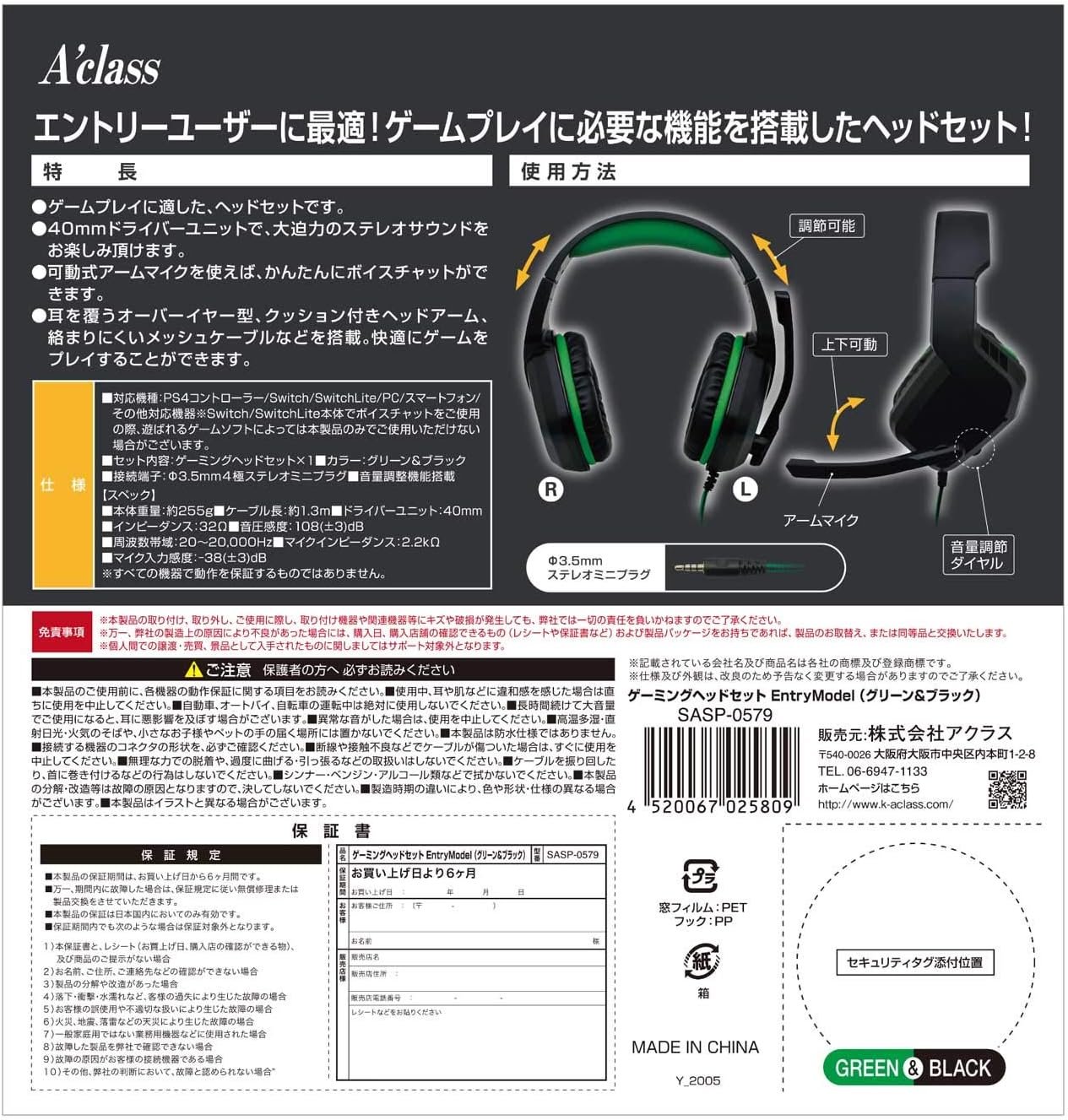■内容の設定:ヘッドセットx 1■色:緑と黒