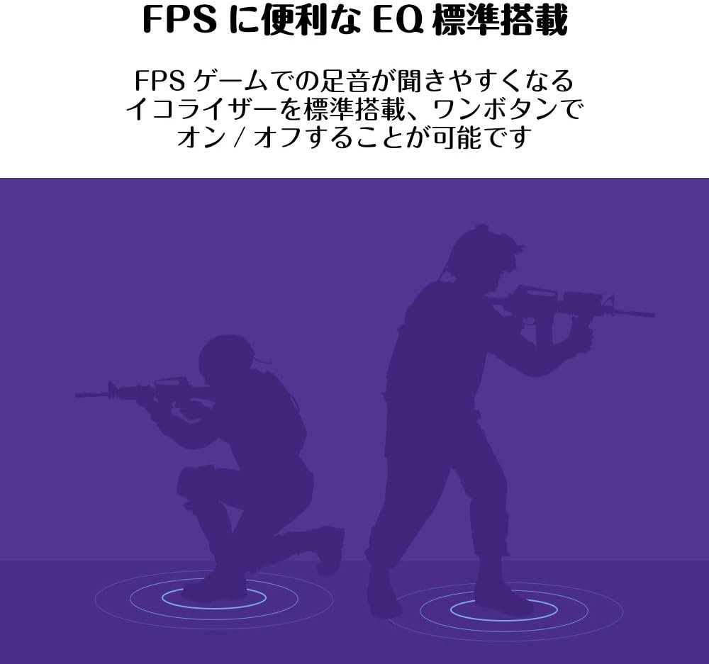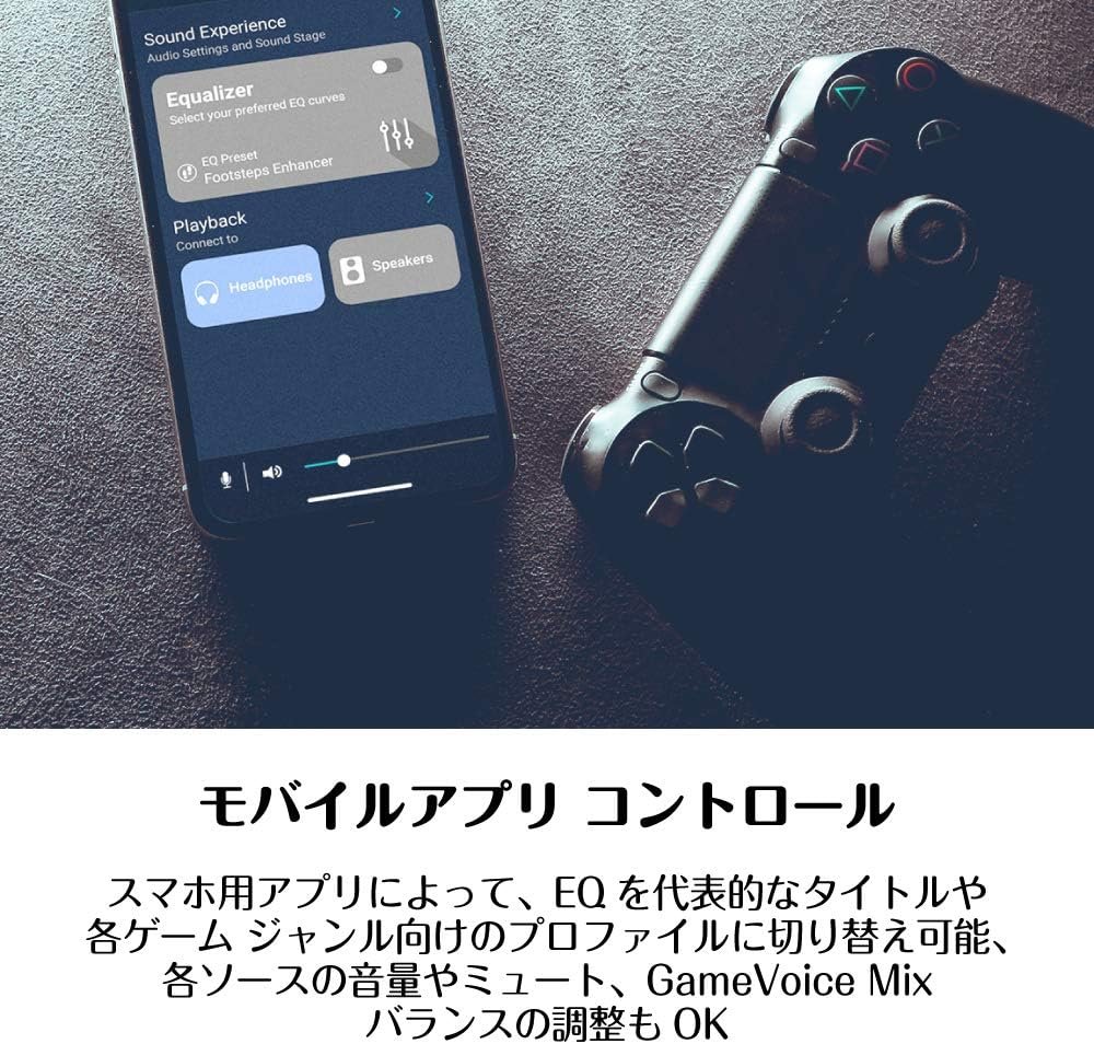 サウンドブラスター品質:PCゲームのオーディオパフォーマンスをホームゲームコンソールに転送できるだけではありません。 「フットステップエンハンサー」イコライザーは標準であるため、ボタンのオンとオフを備えたFPSゲームなど、足の音を強調することができます。スマートフォンまたはPCでイコライザーをカスタマイズし、対戦相手よりも優れたオーディオ環境を構築できます