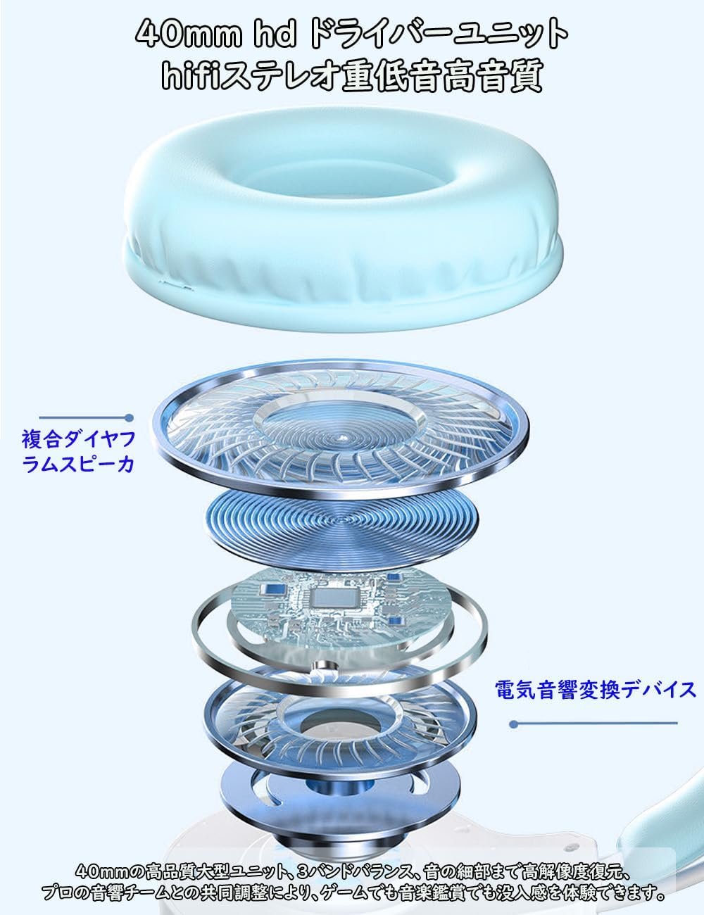 (1.6インチ(40 mm)ドライバー、3D音響効果)