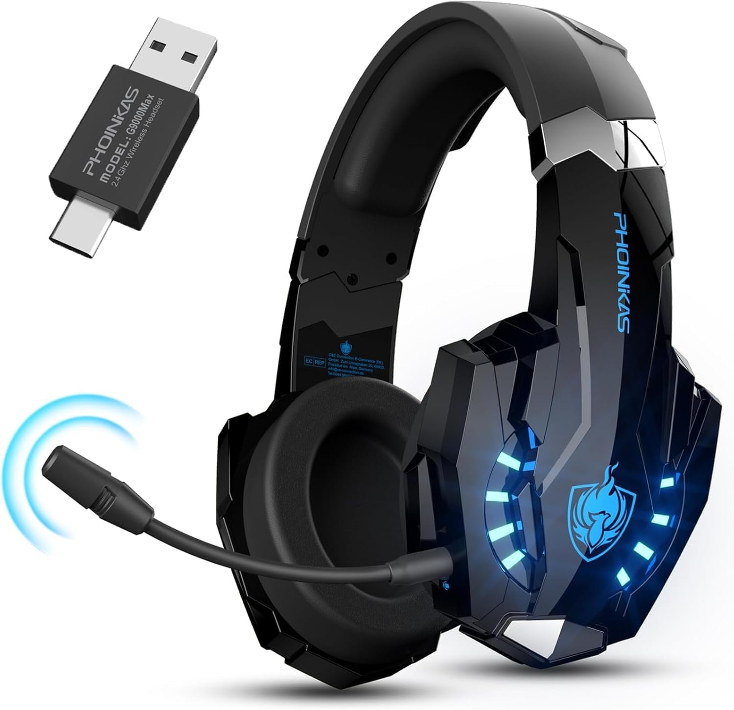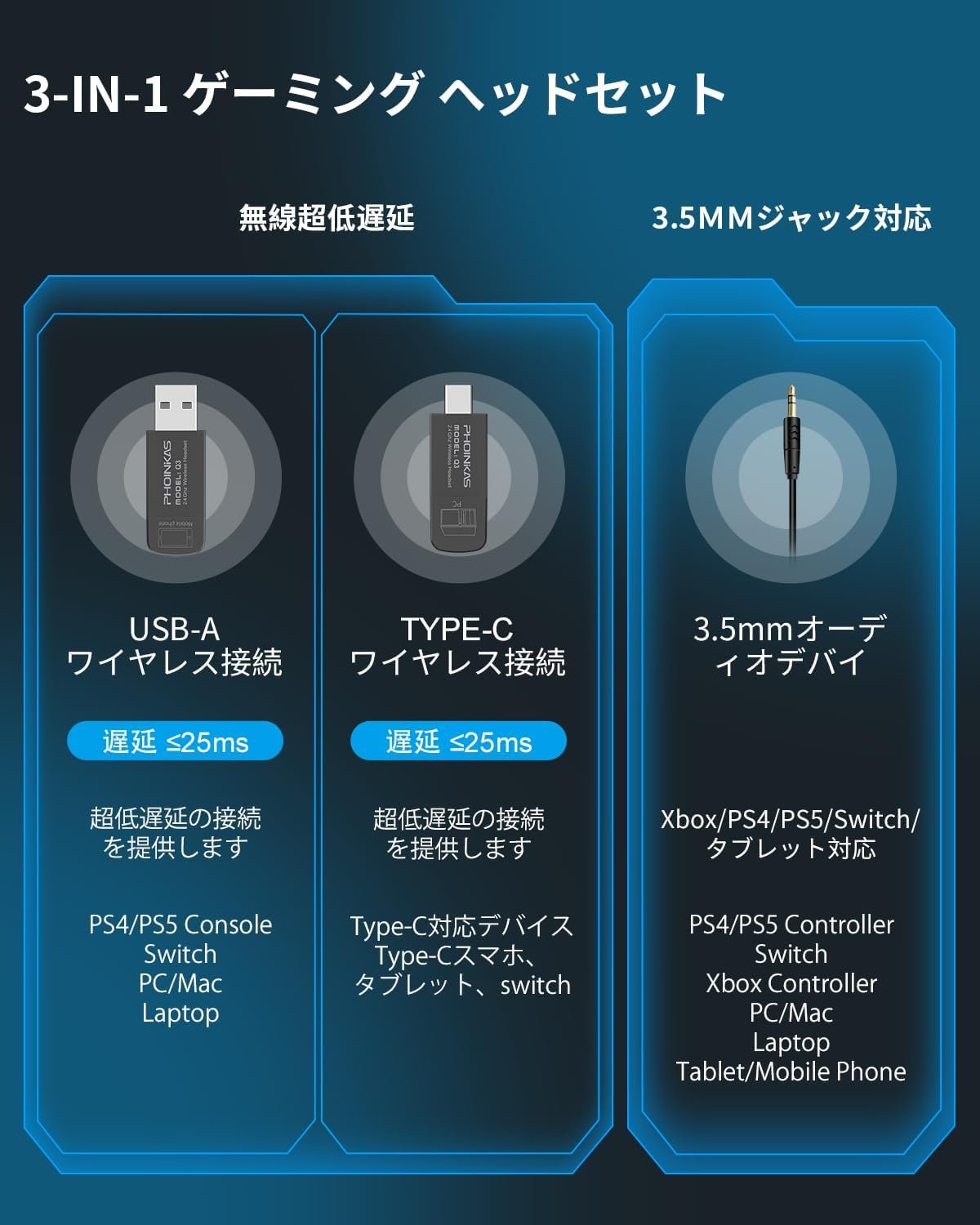 ゲームヘッドセットワイヤレス有線二重使用2.4GHz 7.1CH FPSヘッドセット低レイテンシノイズ抑制ディープベースシールベースコントローラーミュートテレスコピックPCS5PS5スマートフォンXboxphoneスイッチLEDライト