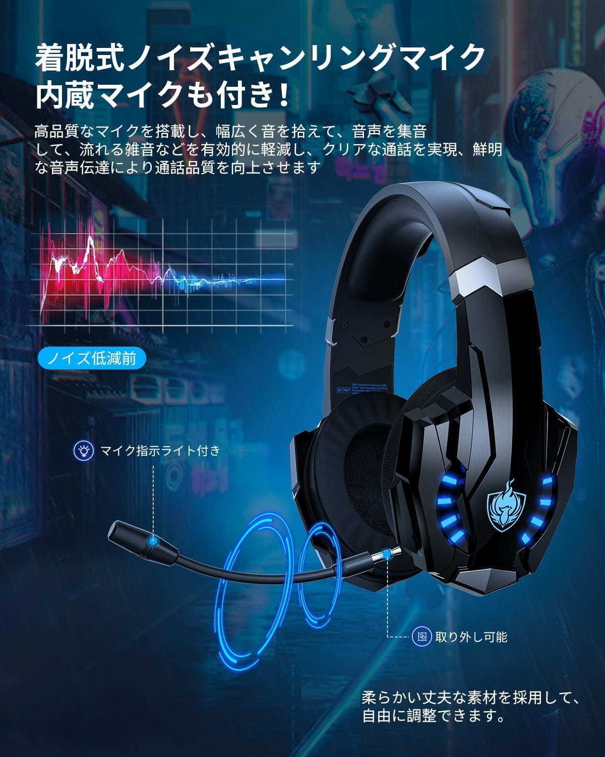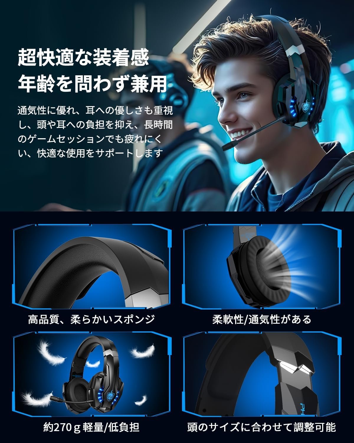 非常に快適なウェア:このゲームヘッドセットは、長期間の使用に耐える快適なフィットを提供するように人間工学に基づいて設計されています。この通気性と穏やかなデザインヘッドセットは、長時間使用中にプレッシャーと快適さを減らすために、軽量で調整可能なヘッドバンドと柔らかい耳カップで設計されています。通気性のあるイヤーカップは、耳の周りの換気を確保し、詰め物を減らし、過熱します。長いゲームセッションに快適なフィットを提供し、軽量のクッション付きイヤーカップと調整可能なヘッドバンドを提供し、頭と耳の負担を最小限に抑え、快適な調整可能なバンドスライダーを提供します。子供、十代の若者たち、大人、ユニセックス、そして快適な人に適しています
