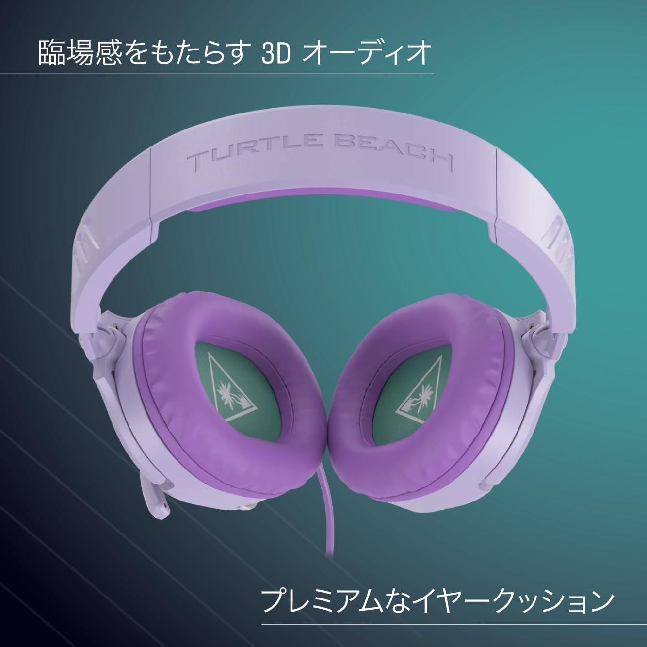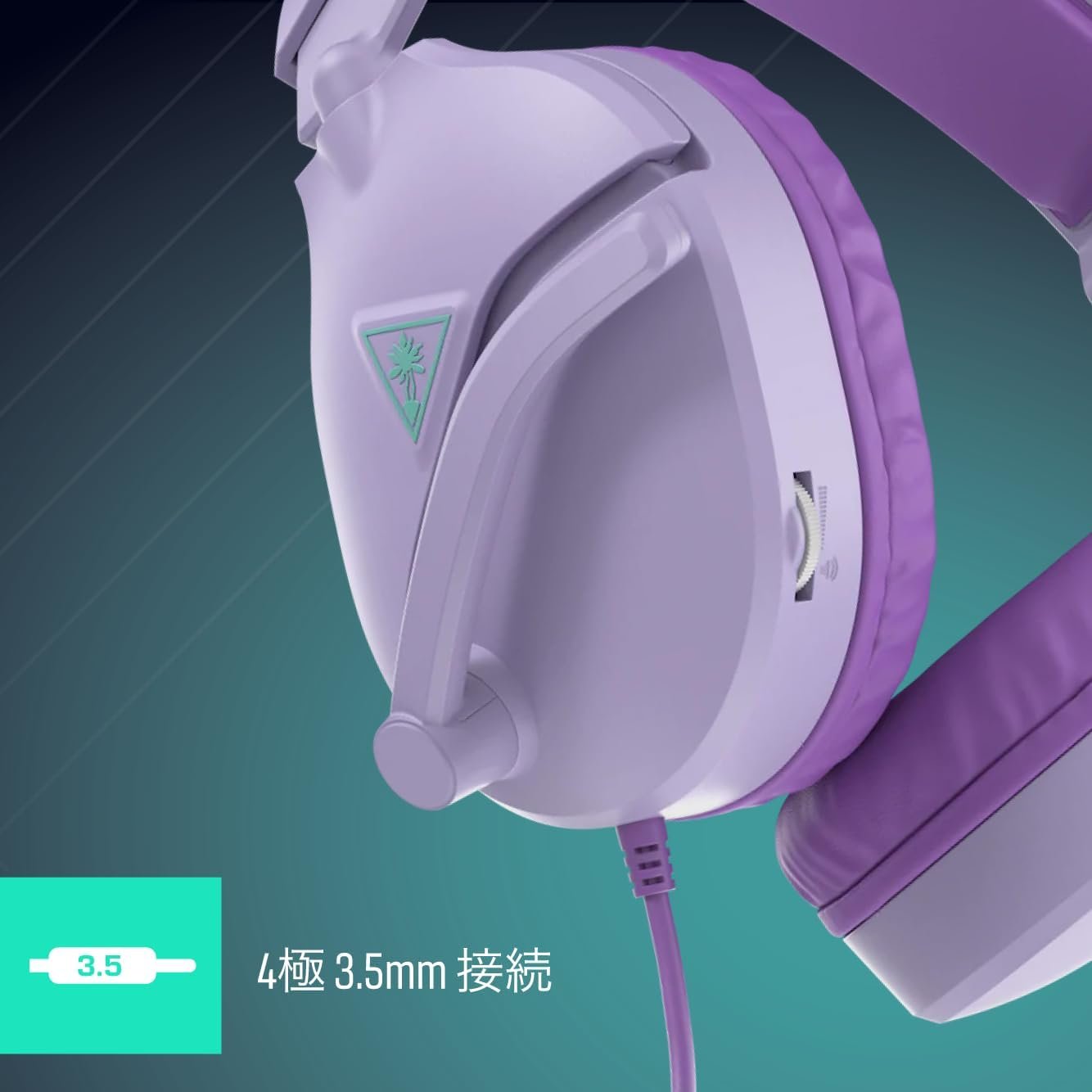 タートルビーチゲーミングヘッドセット、軽量、8.1オンス(230 g)、ヘッドフォン、PS5、PS4、スイッチ、Xboxスマートフォン、ワイヤード3.5mm、フリップミュート、マイク、マイク、レコン70、ラベンダー、本物の日本製品