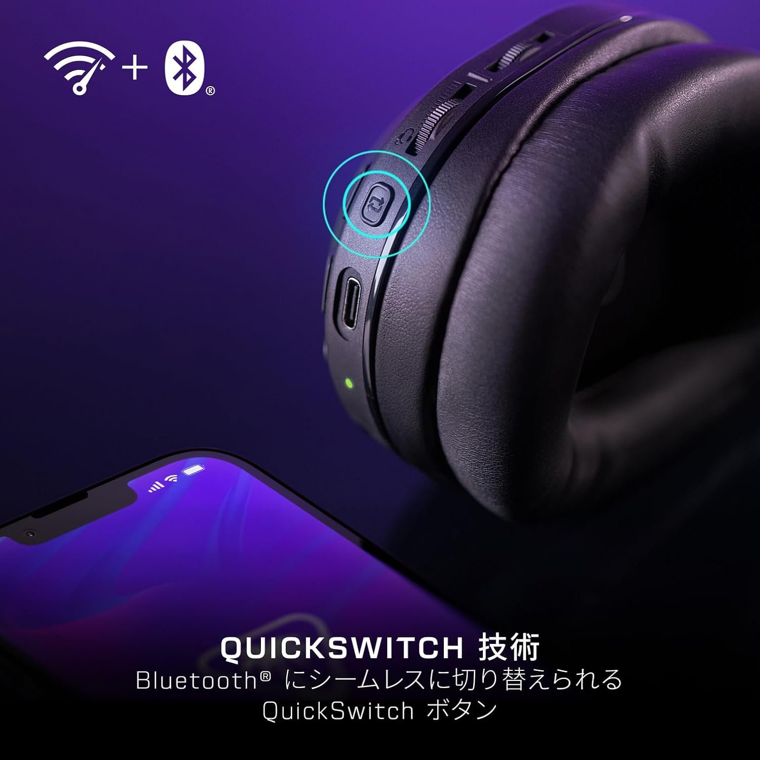 急速な充電機能と最大40時間のバッテリー寿命により、残りのバッテリーを心配することなく、長いゲームセッションを楽しむことができます。 - QuickSwitchテクノロジー