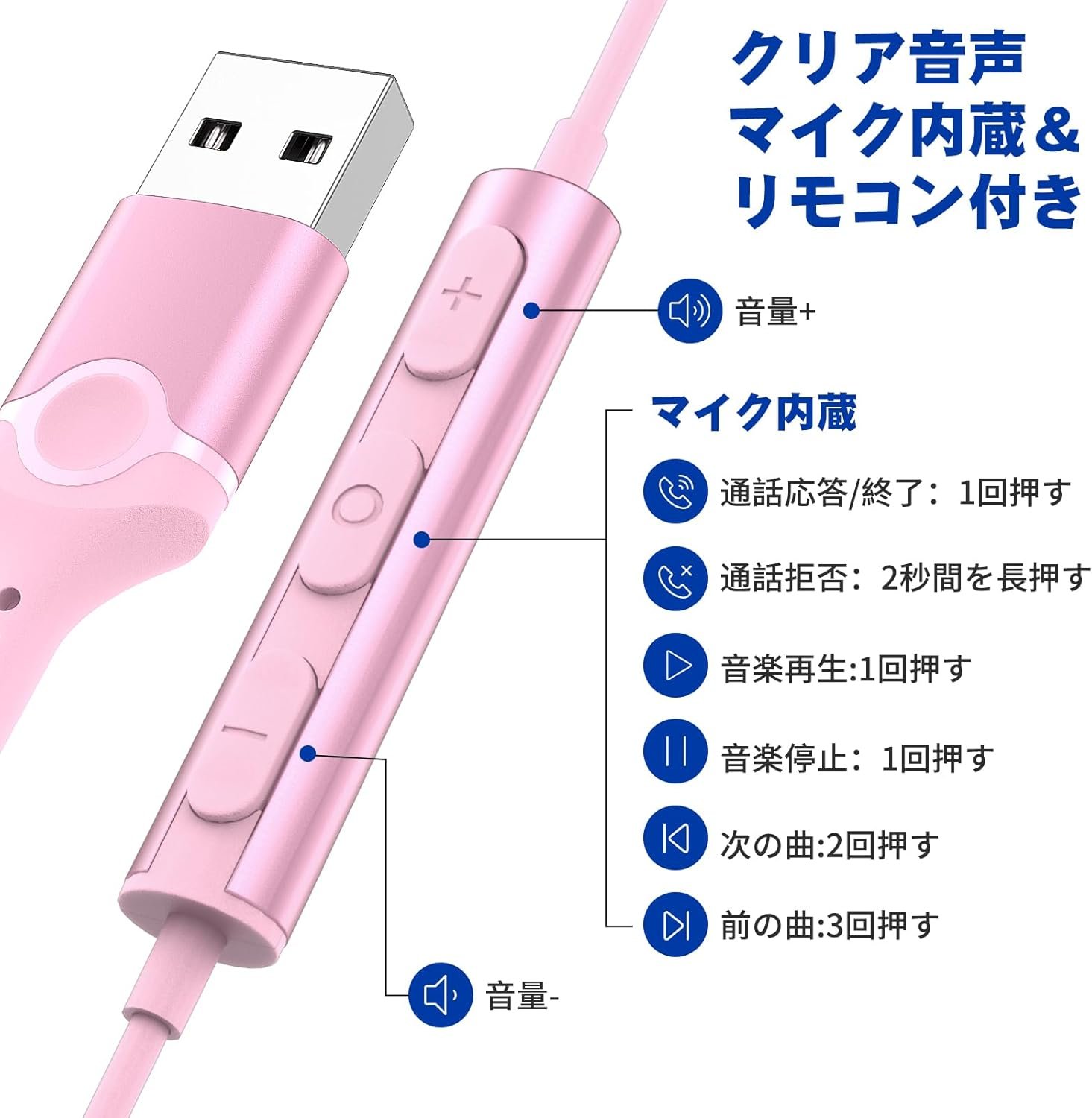 イヤホンUSBコンピューターイヤホン付きUSB WIRED USB Earphone PCヘッドセットインイヤーイヤホンヘッドフォンイヤホンの仕事オンラインゲーム、高解像度の高音質品質、磁気デザイン、USBヘッドセット、有線イヤホン、ディープベース、リモートコントロール、互換性のあるノイズキャンセルイヤホン、かわいい、軽量、青、子供、新しい学校の入学式、卒業、ギフト