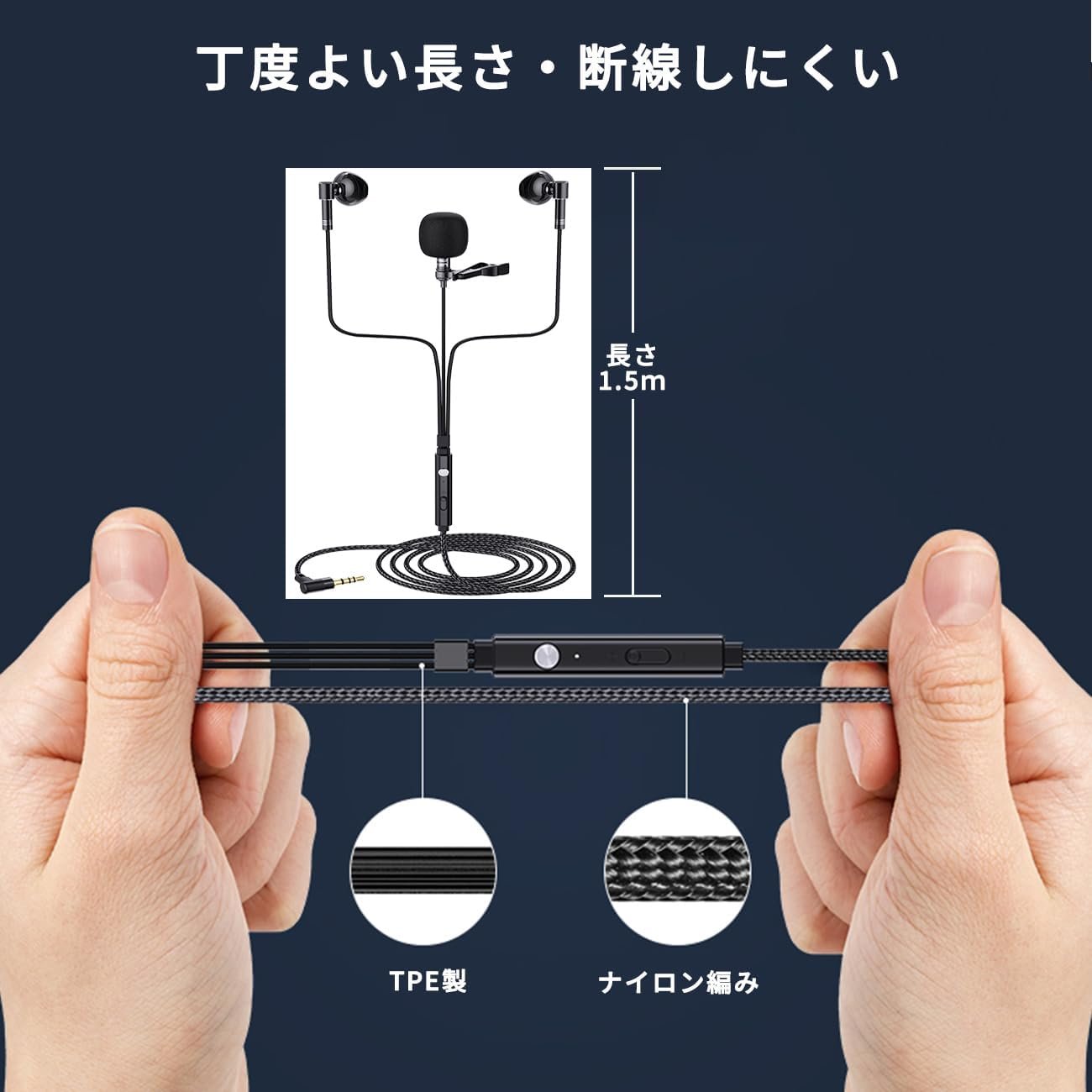 リモートコントロールが含まれ、4.9フィート(1.5 m)の完全な長さ:イヤホンマイクのリモートコントロールには、回答/エンドコールスイッチがあり、ボリューム調整ボタンも含まれています。コードの上部は、タッチノイズを減らすTPE波コードで作られており、下部は切断が難しいナイロン編組コードを使用します。コードの長さは4.9フィート(1.5 m)で、メインユニットをバッグに入れても、ゆるく接続できます