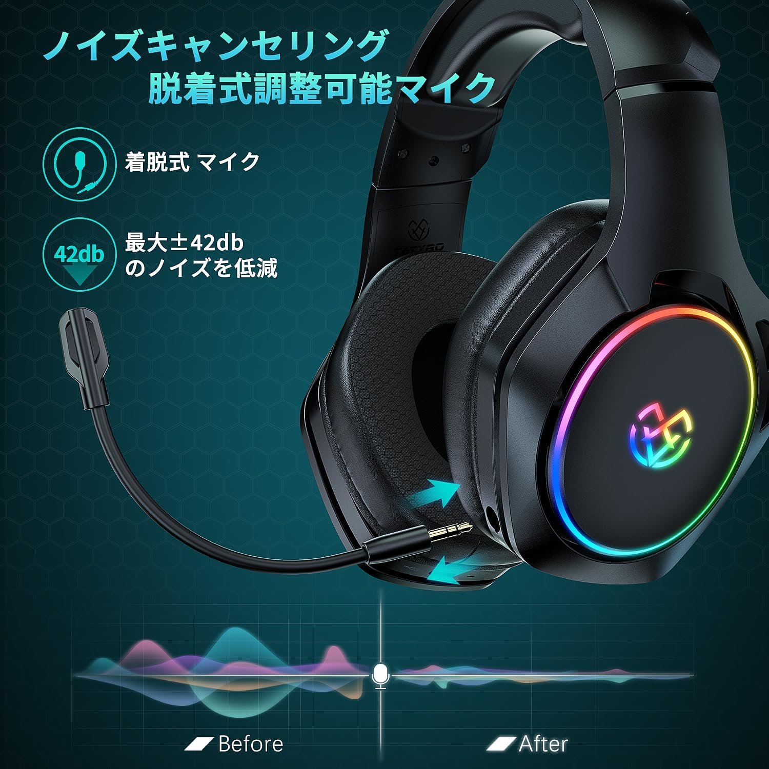 ゲーミングヘッドセットゲームヘッドフォンワイヤレスヘッドフォンPS5 PS4ヘッドフォンヘッドセット付きマイクゲーム