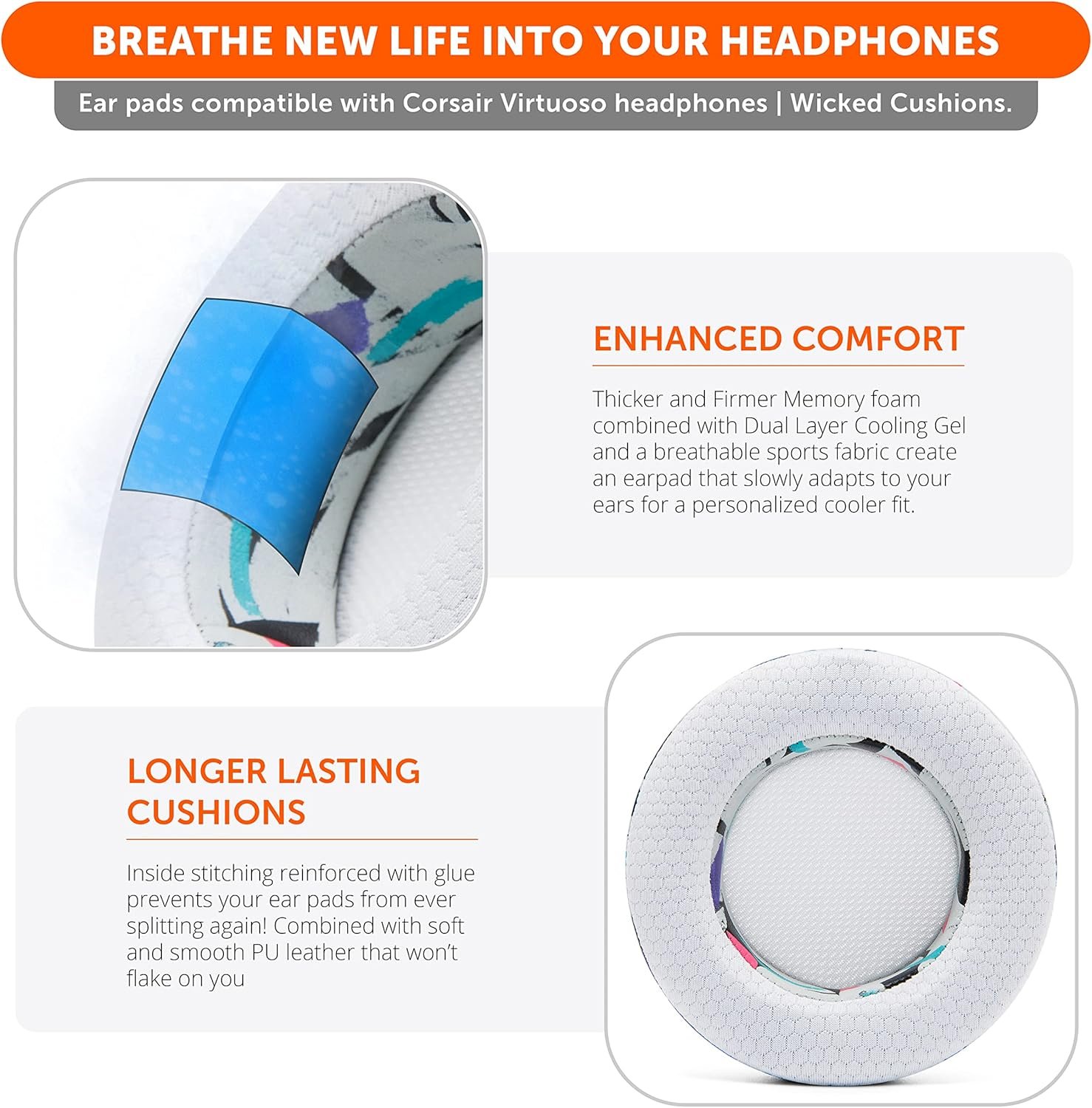 WCフリーズVirtuoso -Corsair Virtuoso Hybrid Fabric Cooling Gel交換用イヤパッド耐久性、厚さ、および騒音分離を増やすための邪悪なクッションによるゲームヘッドセット用