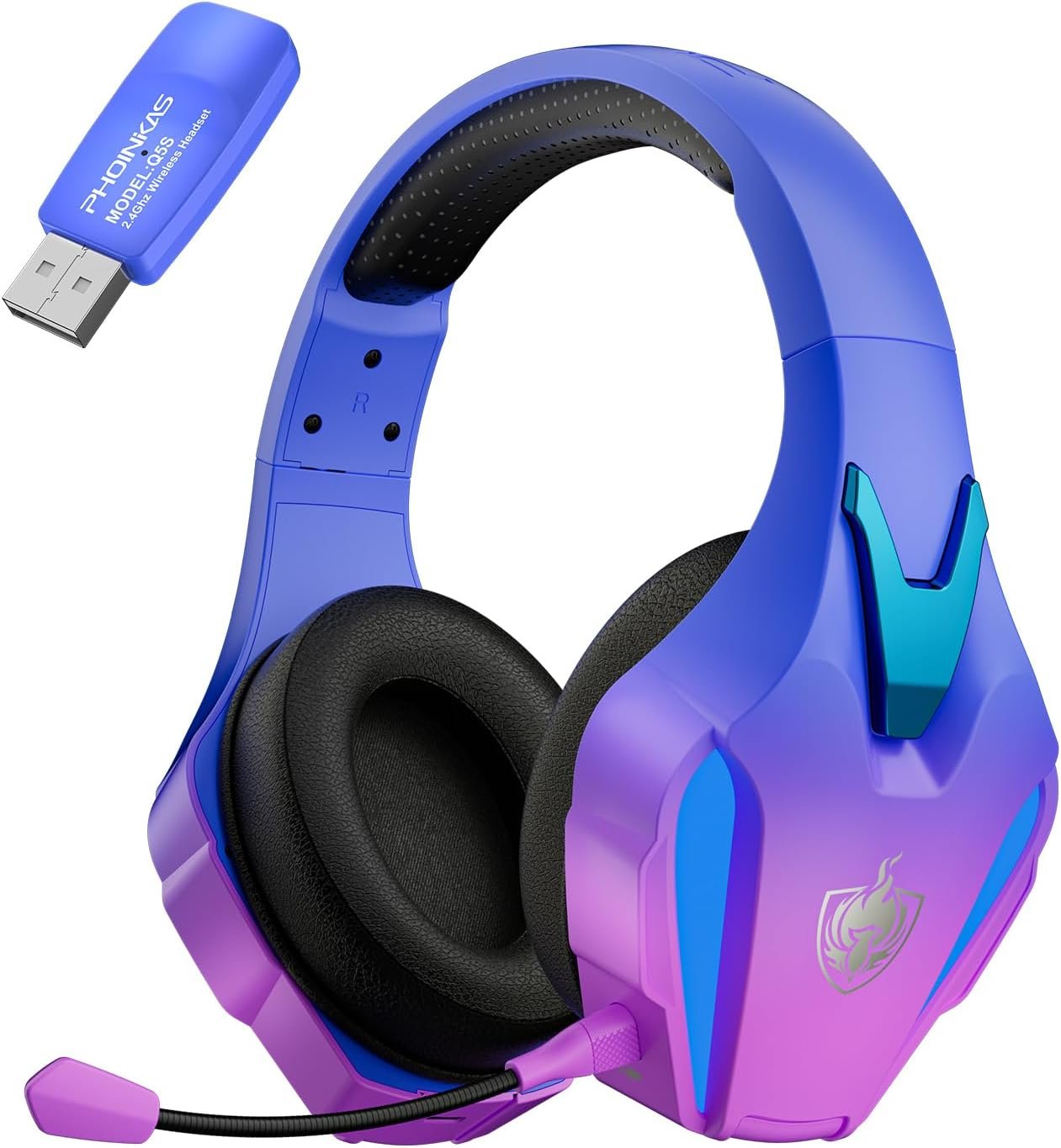 YOTMSゲームヘッドセット、マイク付きワイヤレスヘッドセット、ワイヤレス、7.1 CH超低レイテンシ、0.1インチ(3.5 mm)有線 / USB 2.4 GHzワイヤレス、ミュート機能を備えたPS5ヘッドセット、40時間連続使用、
