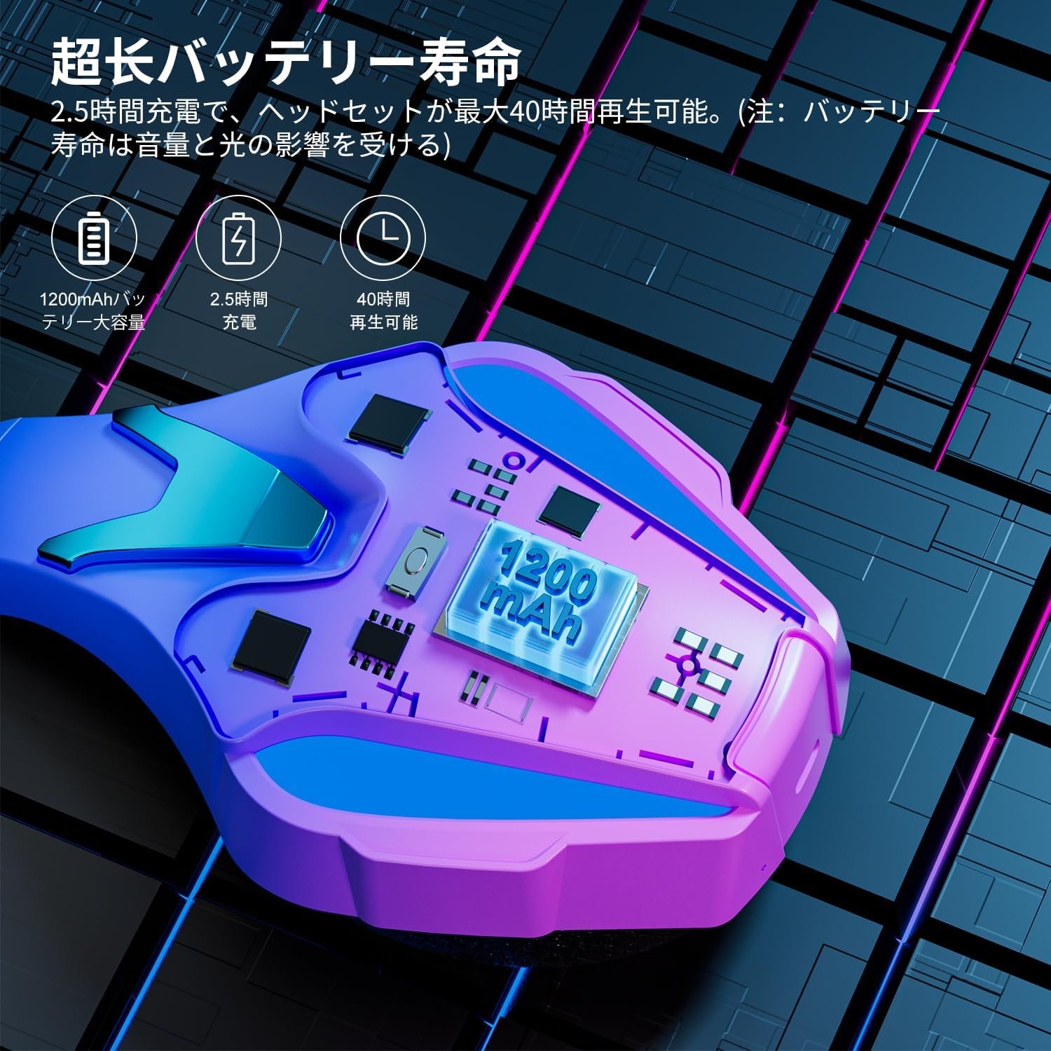 40時間の連続再生およびタイプC充電:ゲームヘッドセットはタイプC充電です。フル充電後40時間のワイヤレスエクスペリエンスを楽しむことができます。充電のためにゲームを中断する必要はありません。ゲームをプレイしたり、友達と話したり、一日中音楽を楽しんだりできます。 (実際のボリューム / LEDの使用により違いがあるかもしれません)