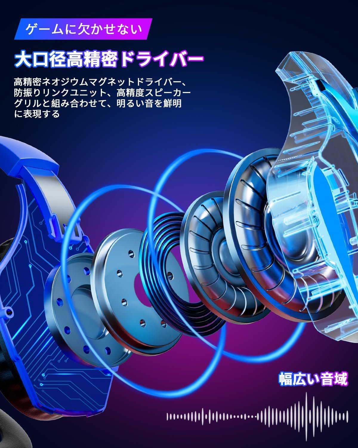 没入型のサウンドエクスペリエンス:高精度40mm磁気ネオジム磁気ドライバーは、鮮やかなサウンドフィールド、クリアサウンド、ショックプルーフサウンドを提供して、サウンド要件を満たします。鮮やかなサウンドフィールド、サウンドの明快さ、および衝撃感覚は、忠実に再現された3次元の没入感です。また、チームの方向性などを聞くことができます