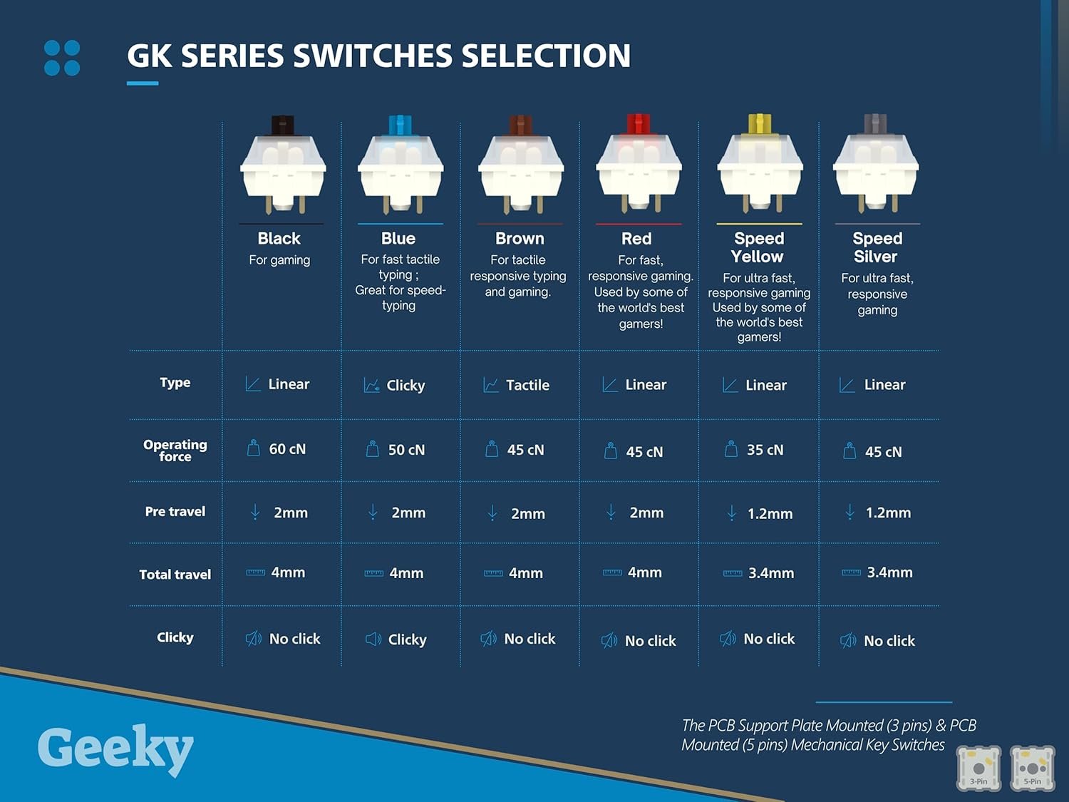 オタクなGK61 60%には、高度なスワップ可能な機械キースイッチがあります。