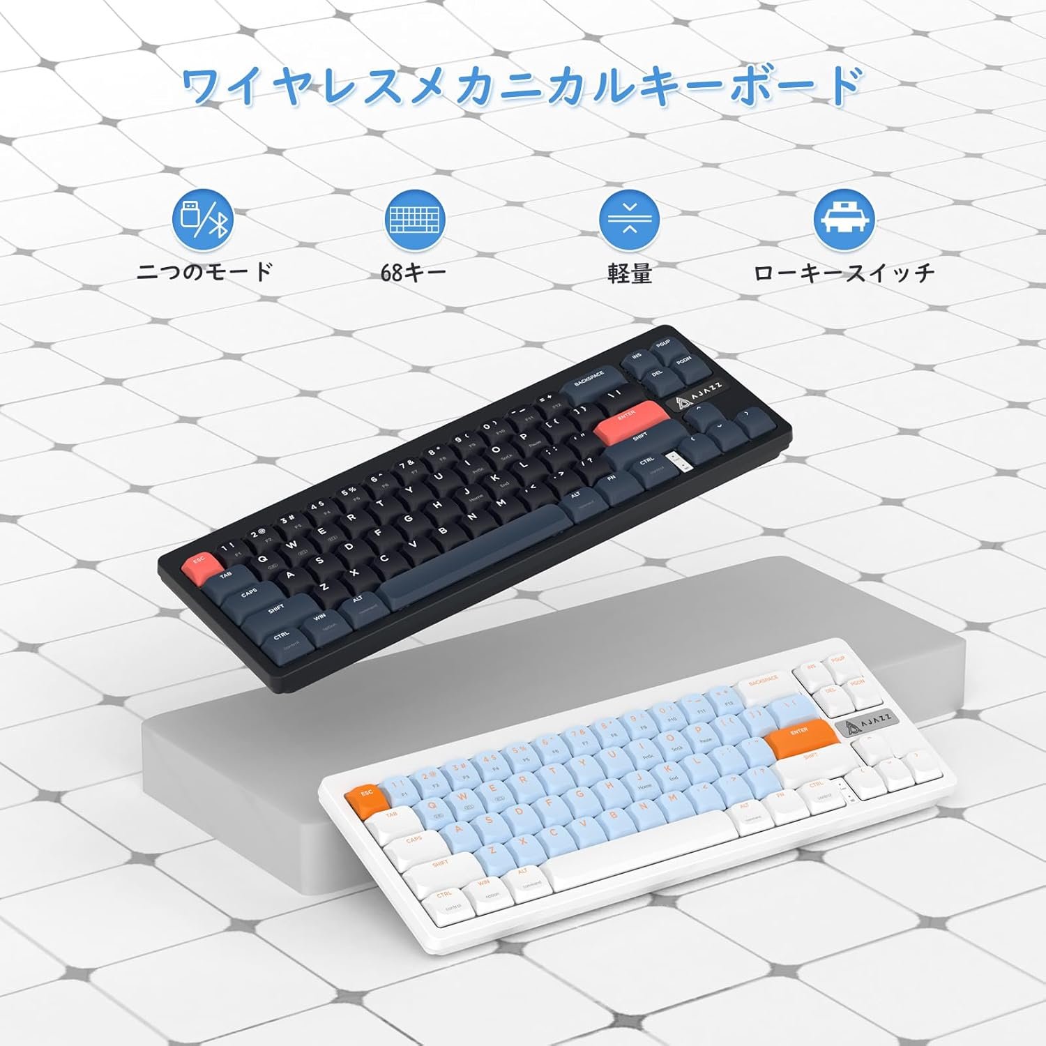 MAMBASNAKE x AJAZZ AKL680 ワイヤレスメカニカルキーボード 軽量 2モードBluetooth&2.4G無線接続 高速応答ゲーミングキーボード 68キー ボールキーキャップ 単4電池式 HUANO