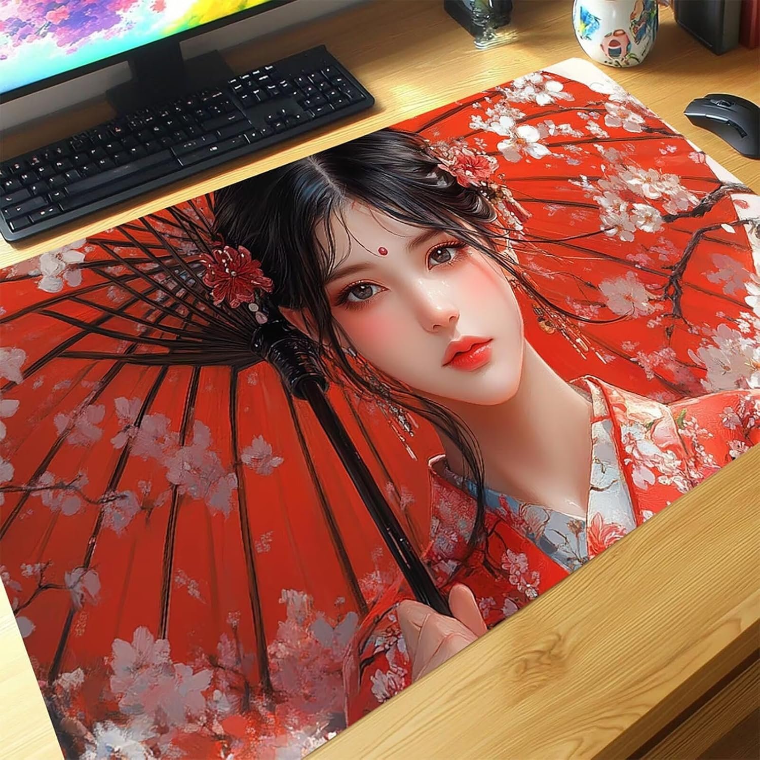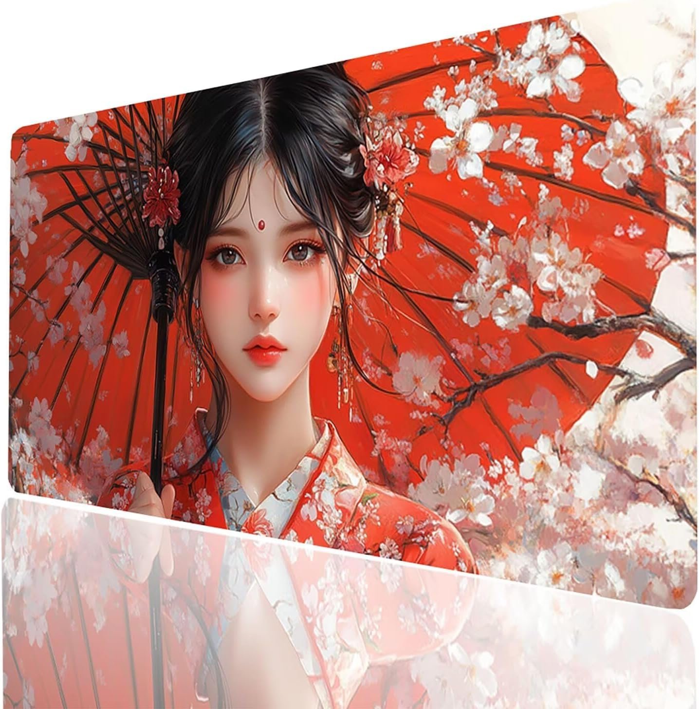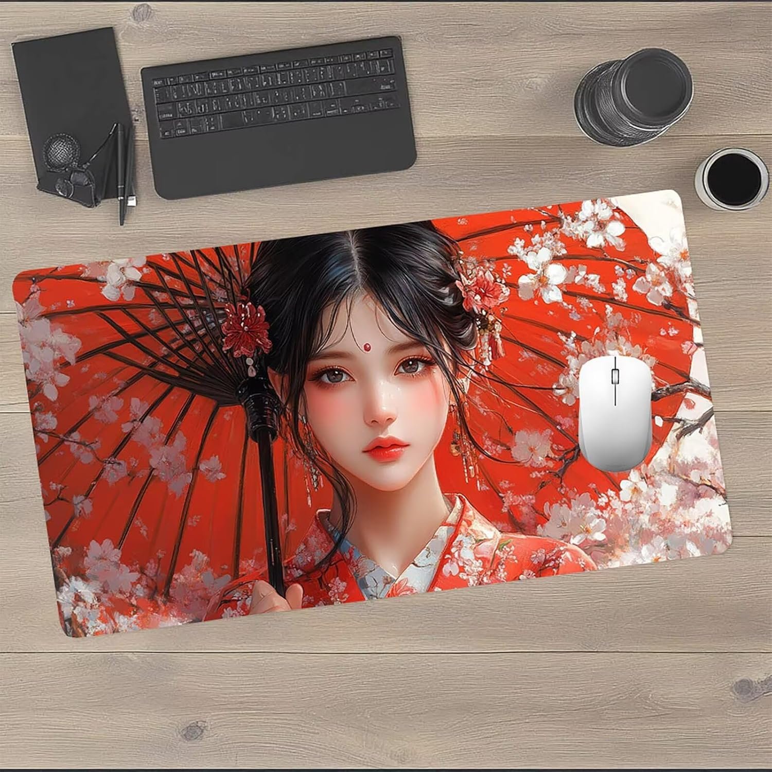 マウスパッドラージ160x80x0.3cmゲーミングマウスパッド傘エクストラ大きなデスクマットゲーミング厚い非滑り止め芸者特大マウスパッド大型キーボードパッドラバーボトップデスクトッププロテクターオフィスホームラップトップ