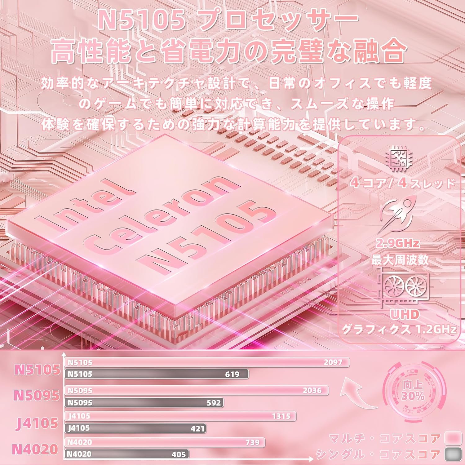 14.1インチピンクのラップトップ [With Windows 11 Pro/Office 2019] 薄くて軽量のラップトップセレロンN5105 2.0-2.9 GHz/DDR4 16GBメモリ/高速SSD 960GB/2K UHD/USB 3.0*2/HDMI/WIFII 5/TYPE-C/3MP
