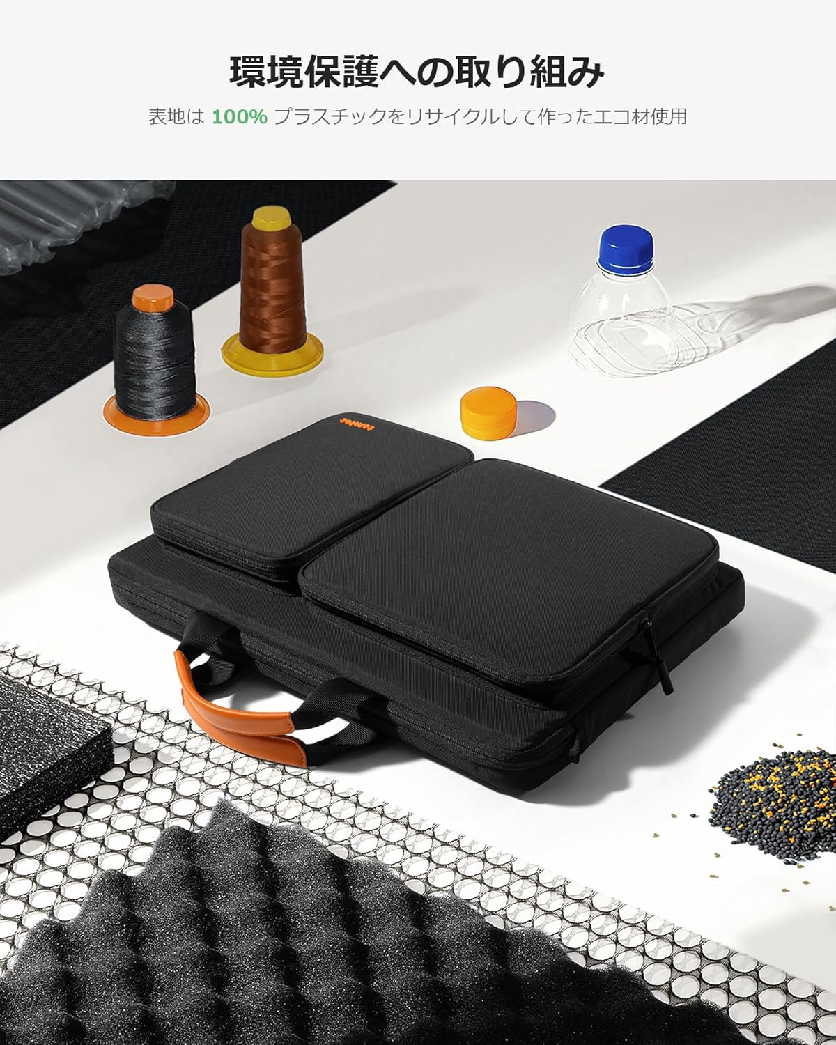 品質と機能性を組み合わせてください。高品質の水密環境に優しい素材、安全なYKKジッパー、バックファブリックの洗練されたライン、およびコンピューターバッグの期待を超える頑丈な構造で作られています。環境を保護しながらコンピューターを保護するために、リサイクルされたペットボトルから環境に優しい素材で作られた最大の快適さを最大限に快適にするための選択されたPUレザーハンドルと軽量デザイン。すべてのTomToc製品には、12か月の心配のない保証が付いています