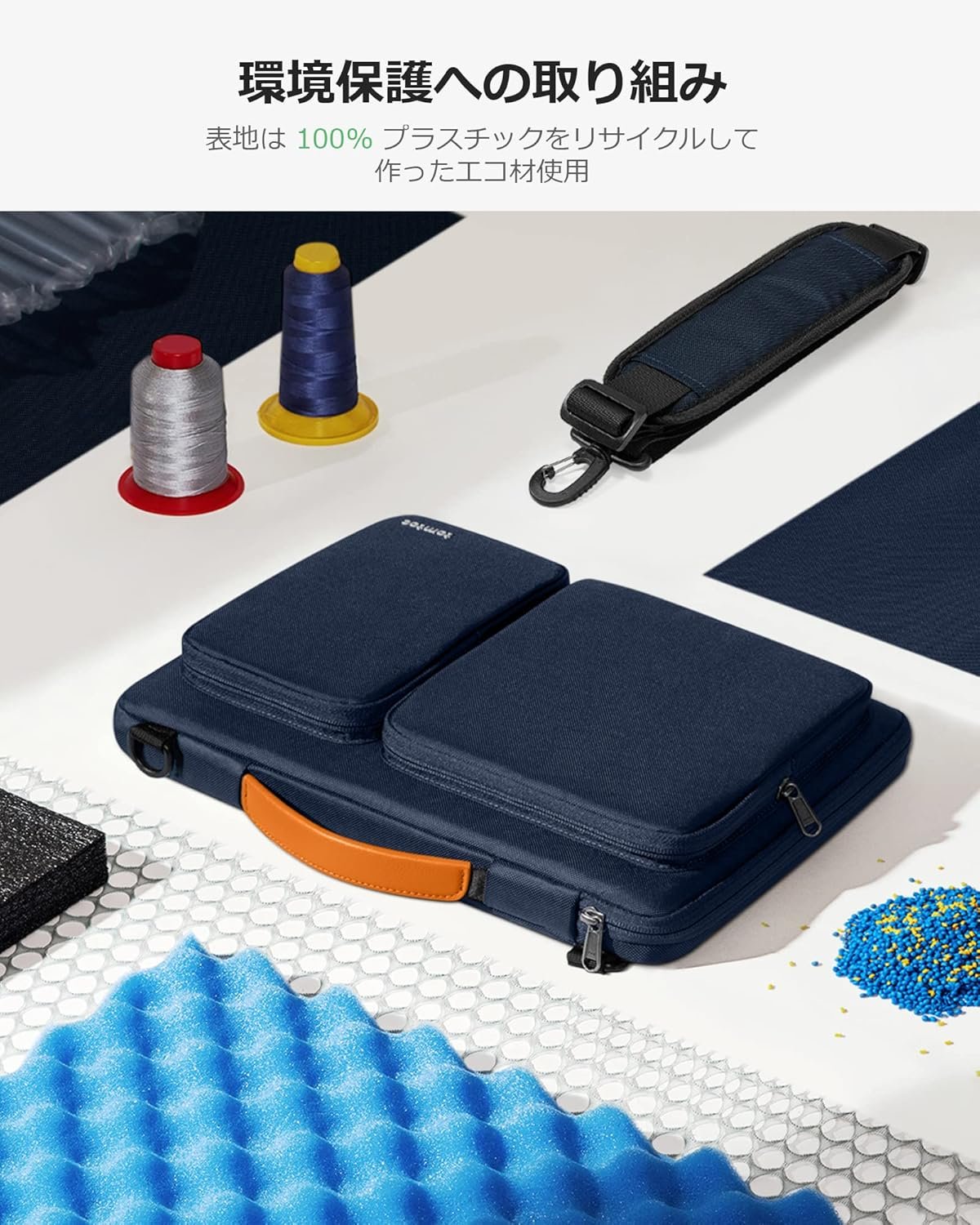 品質と機能性を組み合わせてください。高品質の水密環境に優しい素材、安全なYKKジッパー、バックファブリックの洗練されたライン、およびコンピューターバッグの期待を超える頑丈な構造で作られています。環境を保護しながらコンピューターを保護するために、リサイクルされたペットボトルから環境に優しい素材で作られた最大の快適さを最大限に快適にするための選択されたPUレザーハンドルと軽量デザイン。すべてのTomToc製品には、12か月の心配のない保証が付いています。