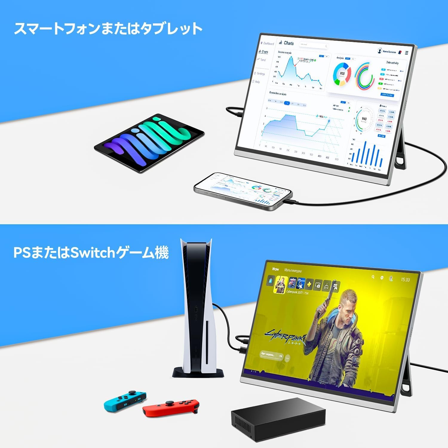 16携帯電話モニター、1920*1200p IPSラップトップモニターUSB-CおよびFreeSync HDMIゲーミングモニターモーションレッグ付き4色