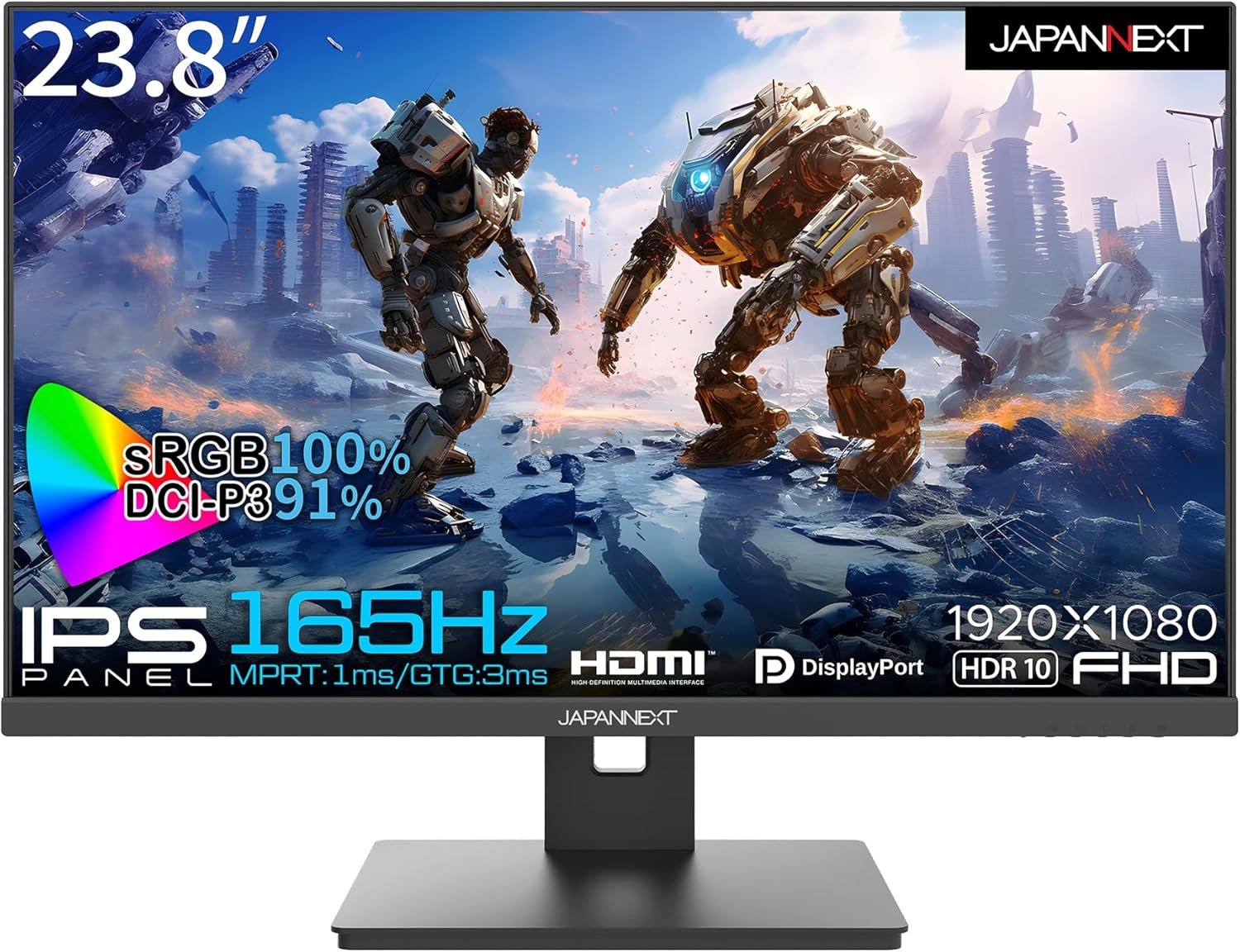 JapanNext 23.8インチIPSフルHD(1920×1080)ゲームモニター、JN-238I165FHDR、1MS(MPRT)、165Hz、リフレッシュレートサポート、HDMI DP SRGB100%、DCI-P3 91%