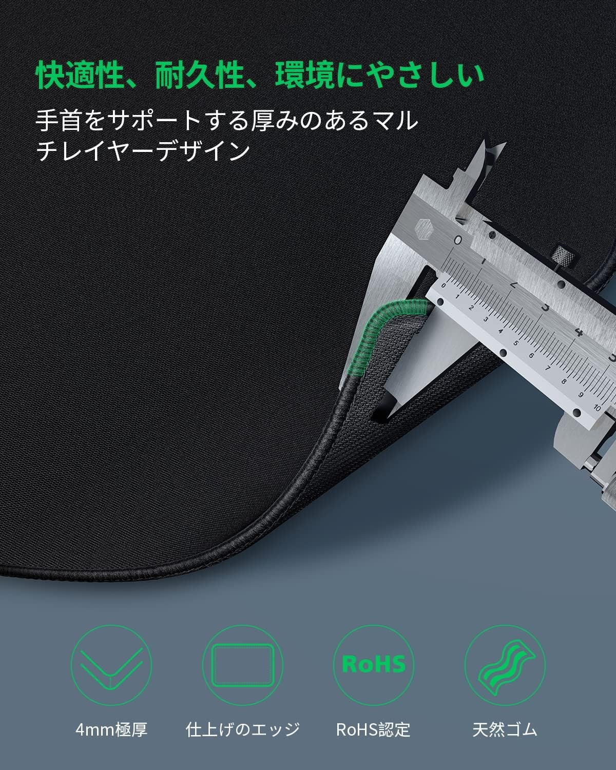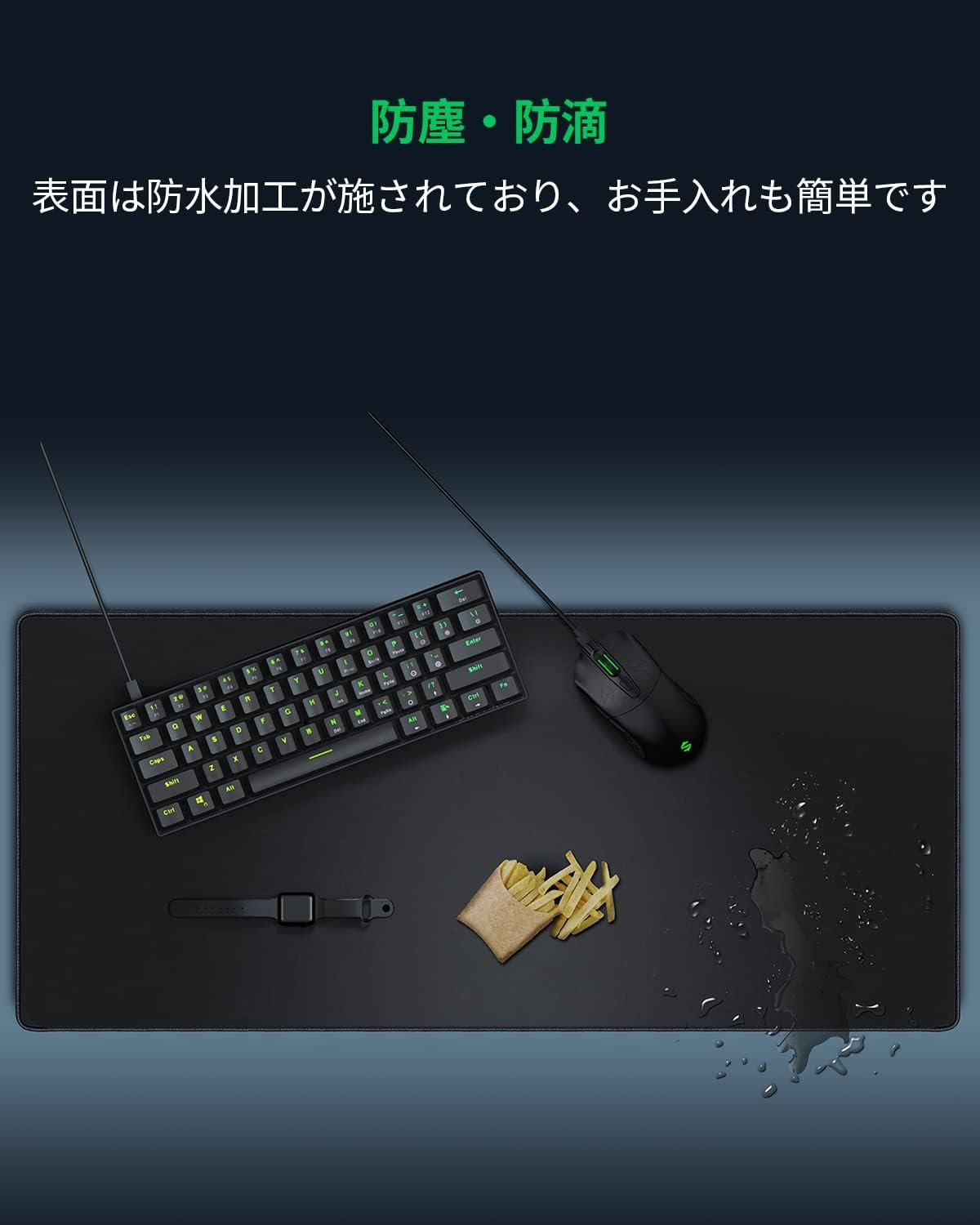 サイズは900x400x4mm / 35.4 “x15.75” x0.15 “であり、すべてのキーボードとマウスに適したマウスを移動するのに最適なスペースを提供します。