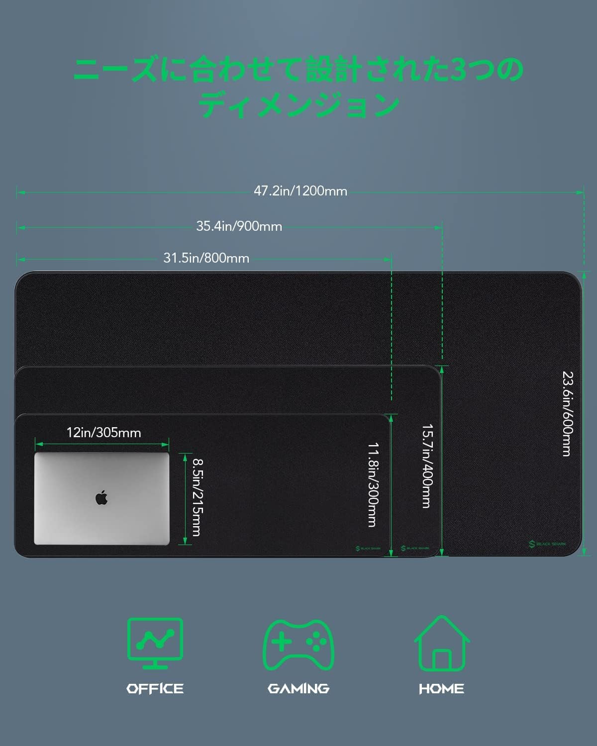 メジャー900 x 430 x 3mm /35.4 “x 16.9” x 0.12 “は、ゲーミングマウスパッド、オフィスマット、ダイニング、コーヒーテーブルマットに使用できます。