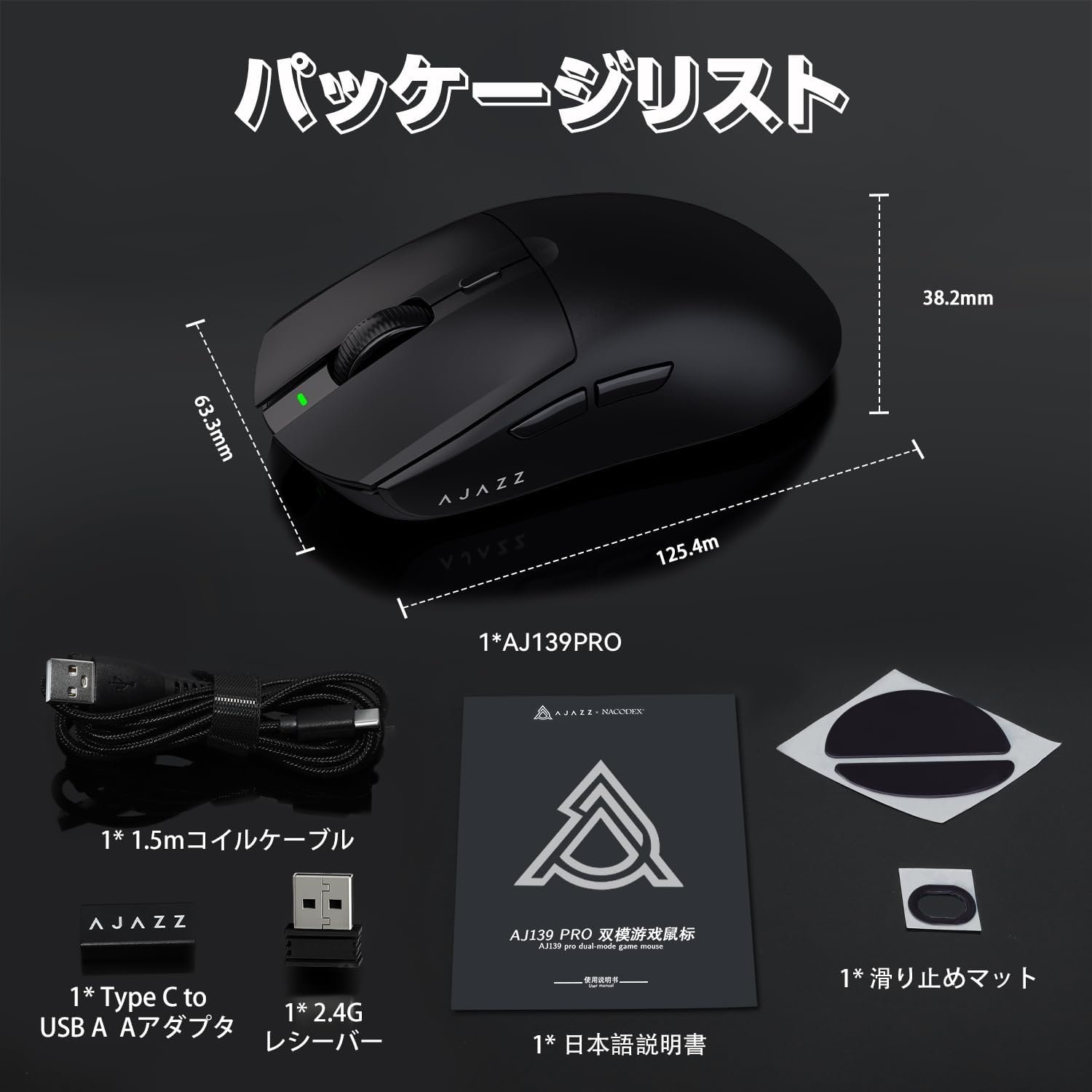 攻撃Shark x Ajazz AJ139Pro 4Kゲーミングマウス、高投票率、2.4gワイヤレス/有線2.4g、700mAh充電、PAW3395XNORDIC52840 26000dpi、約65gの軽量デザイン、DIYのために持ち運びが簡単です