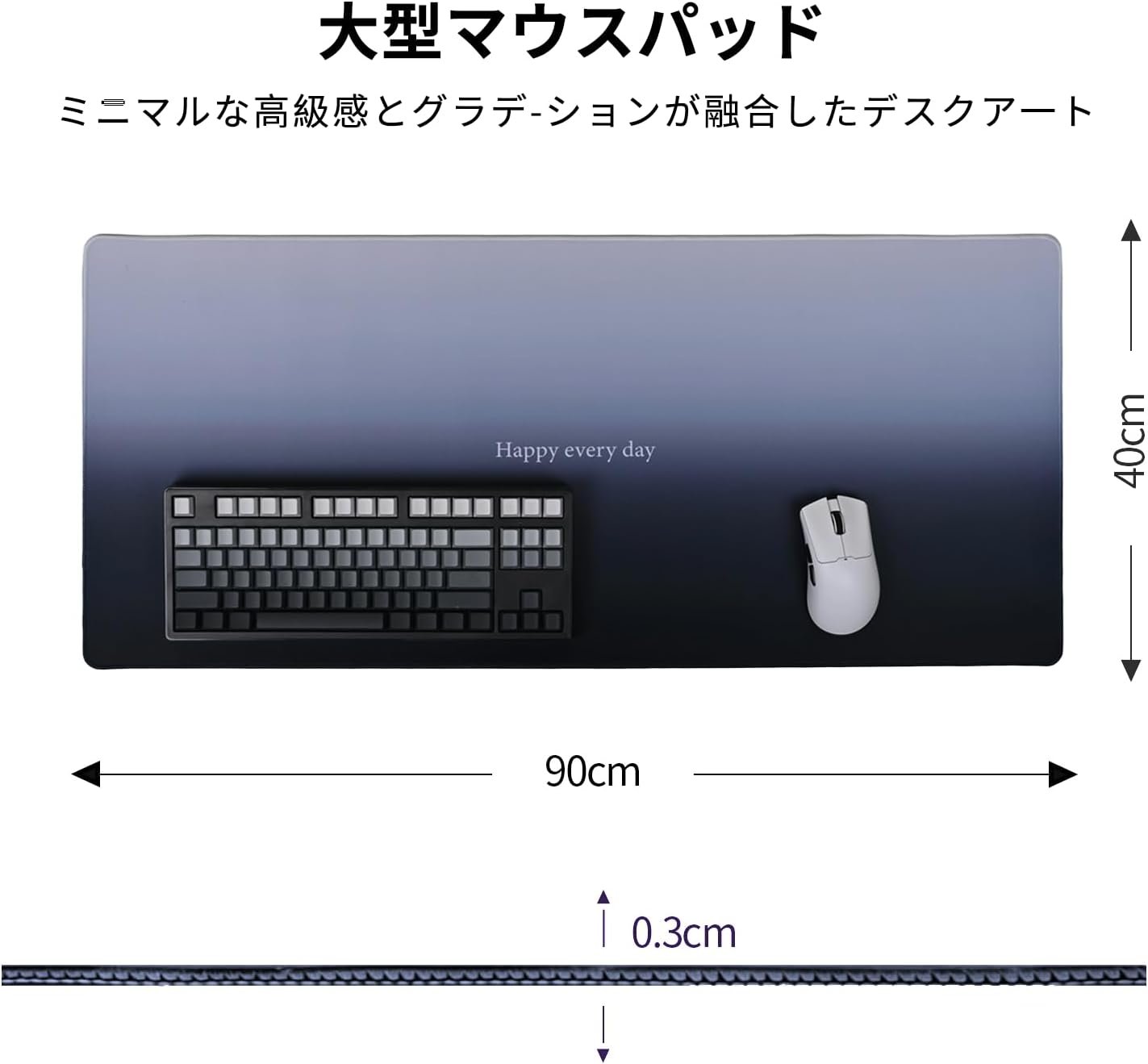 十分なサイズと信頼性のある作業性マウスパッドは90 x 40 cmで、厚さは3 mmです。マウスパッドだけでなく、デスクマットでもある寛大なスペース。裏側はアンチスリップ8パターンで設計されており、テーブル表面の吸引力を増加させ、しっかりと固定します。大規模で動的な操作を使用すると、さまざまなデバイスに配置できることをご安心ください。厚いデザインにより、手首の負担が軽減されるため、PCを長期間使用する人に最適な選択肢になります。