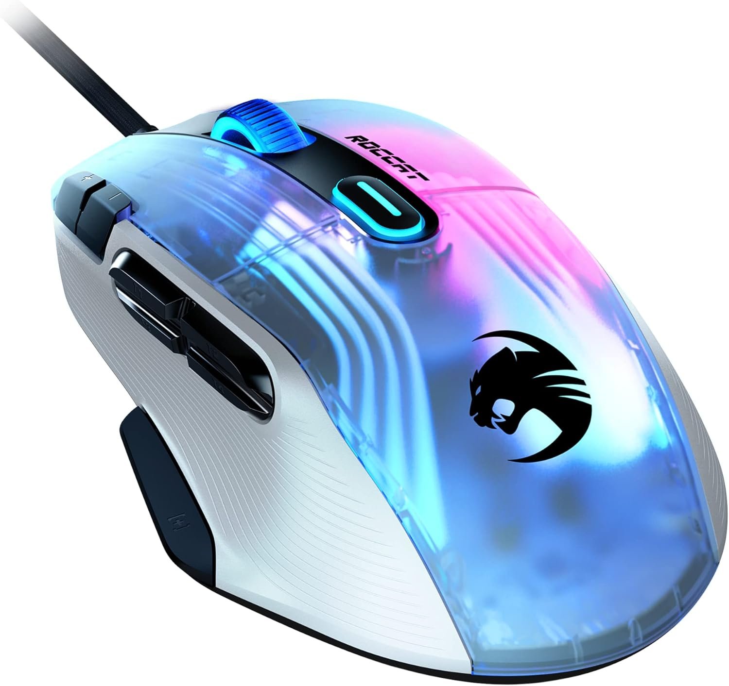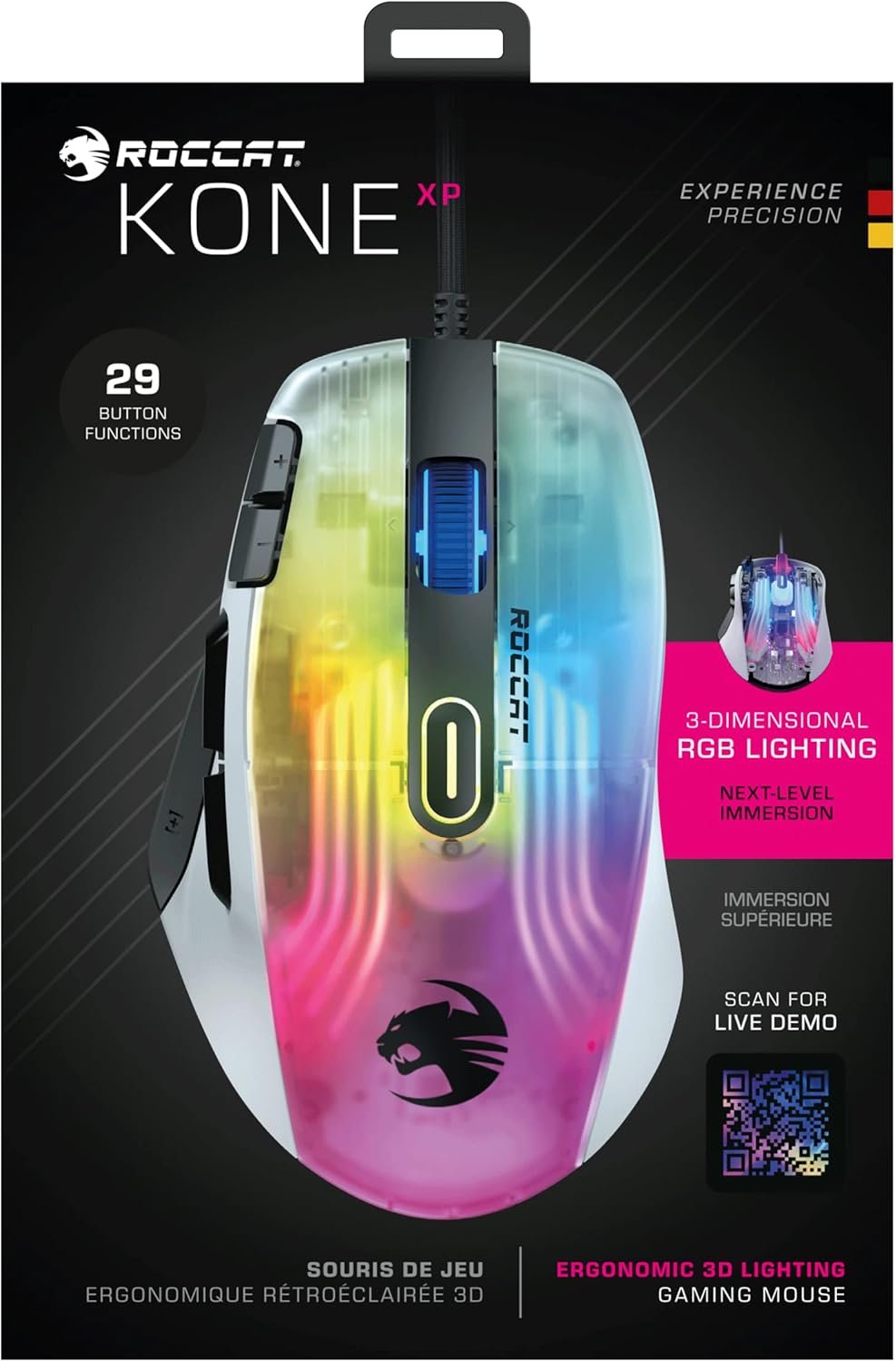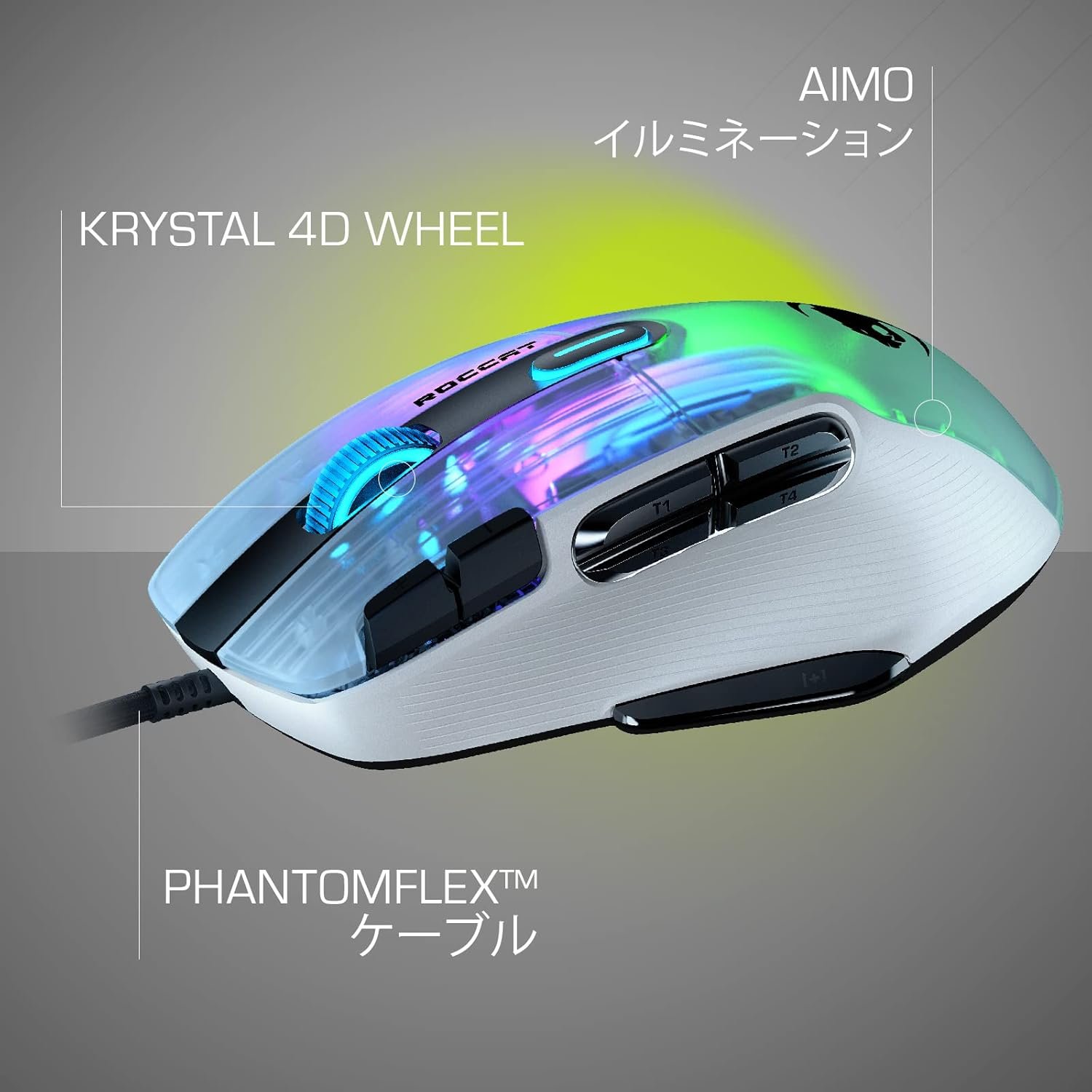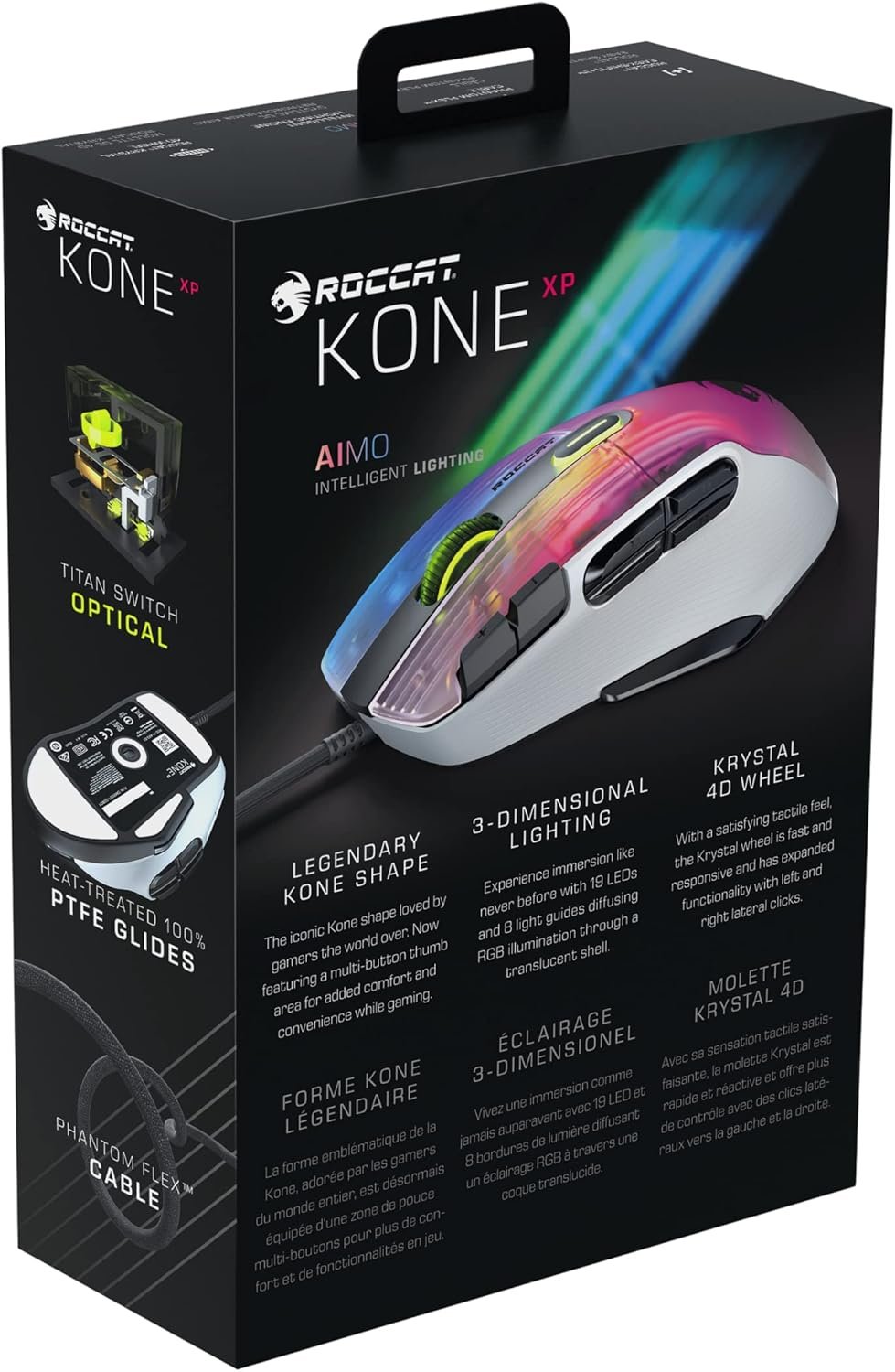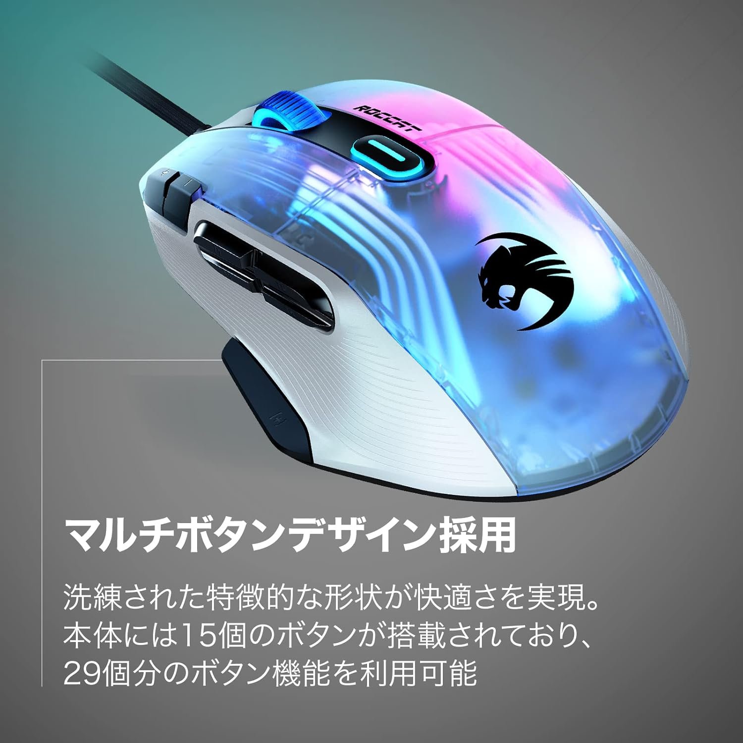 Roccat Kone XP Gaming Mouse、有線白/白、光学/19k/光スイッチ/マルチボタン/104g/4dホイール/PTFE/RGB/REFLEX/MMOドイツデザイン
