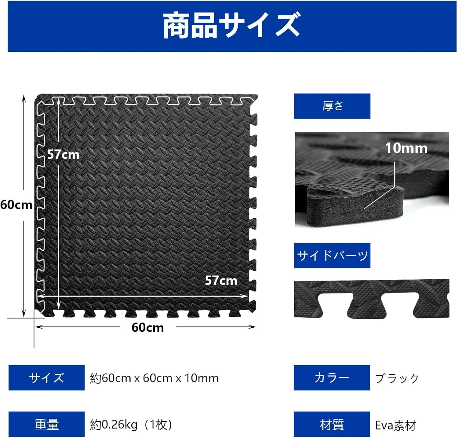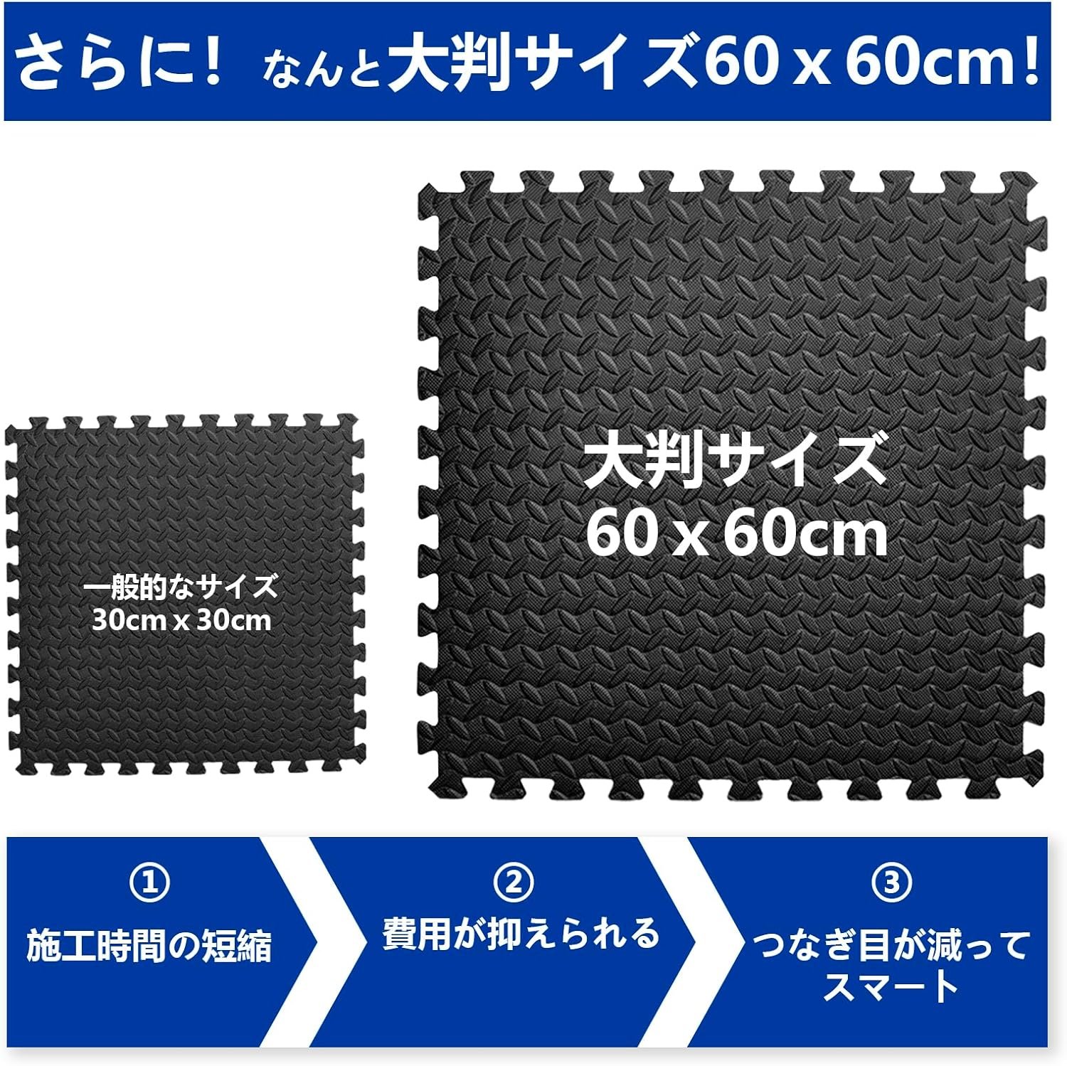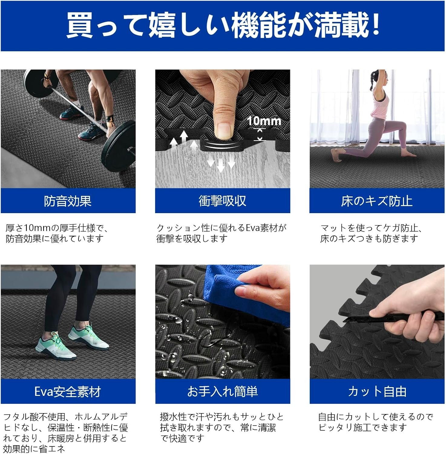 大型サイズ、清掃が簡単:23.6 x 2.4 x 0.4インチ(60 x 60 x 10 mm)、12(45 x 45 cm)のセット(24サイドクッションが含まれています。40mm(10 mm)の厚さと40度の硬度があり、このサウンドフーフマットは、足音を吸収し、マットを吸収します。さらに、縫い目が比較的低いため、湿った布または軽度の石鹸で簡単に掃除できます。