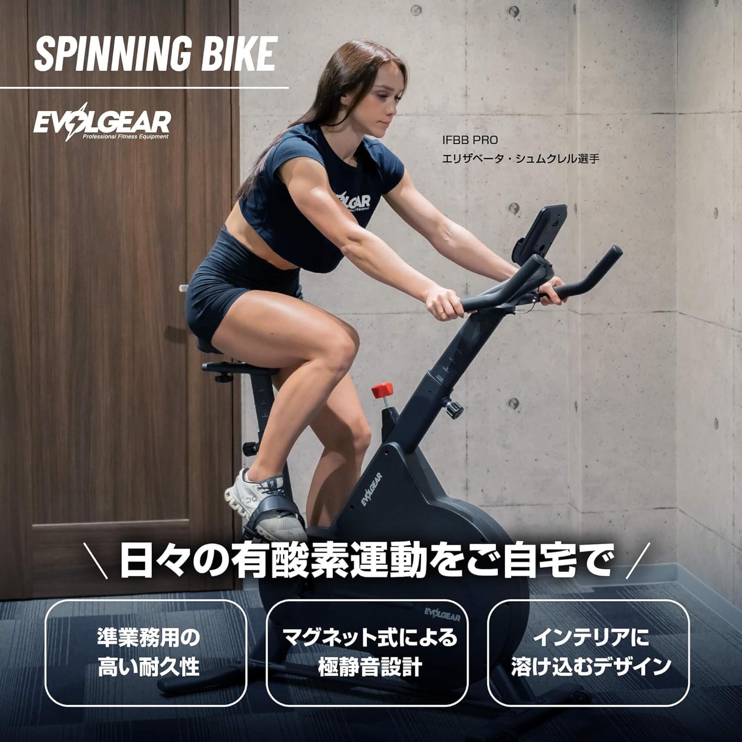 Evolgear Spinning Bike、Ultra Quiet、Magnetic、Exercising Bike、Spin Bike、Fitness Bike、Adaginable Saddle&Handle、家庭用、ステップレス調整、簡単なアセンブリ、ホイール、トレーニングバイク、安全、心臓