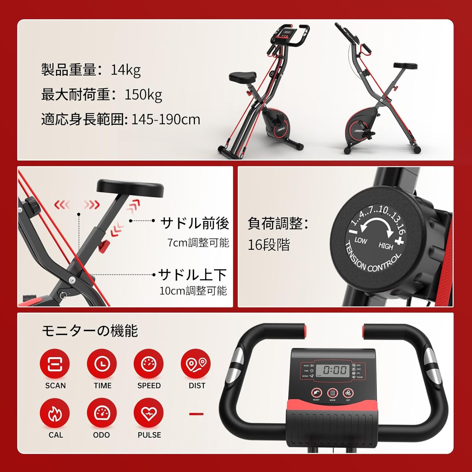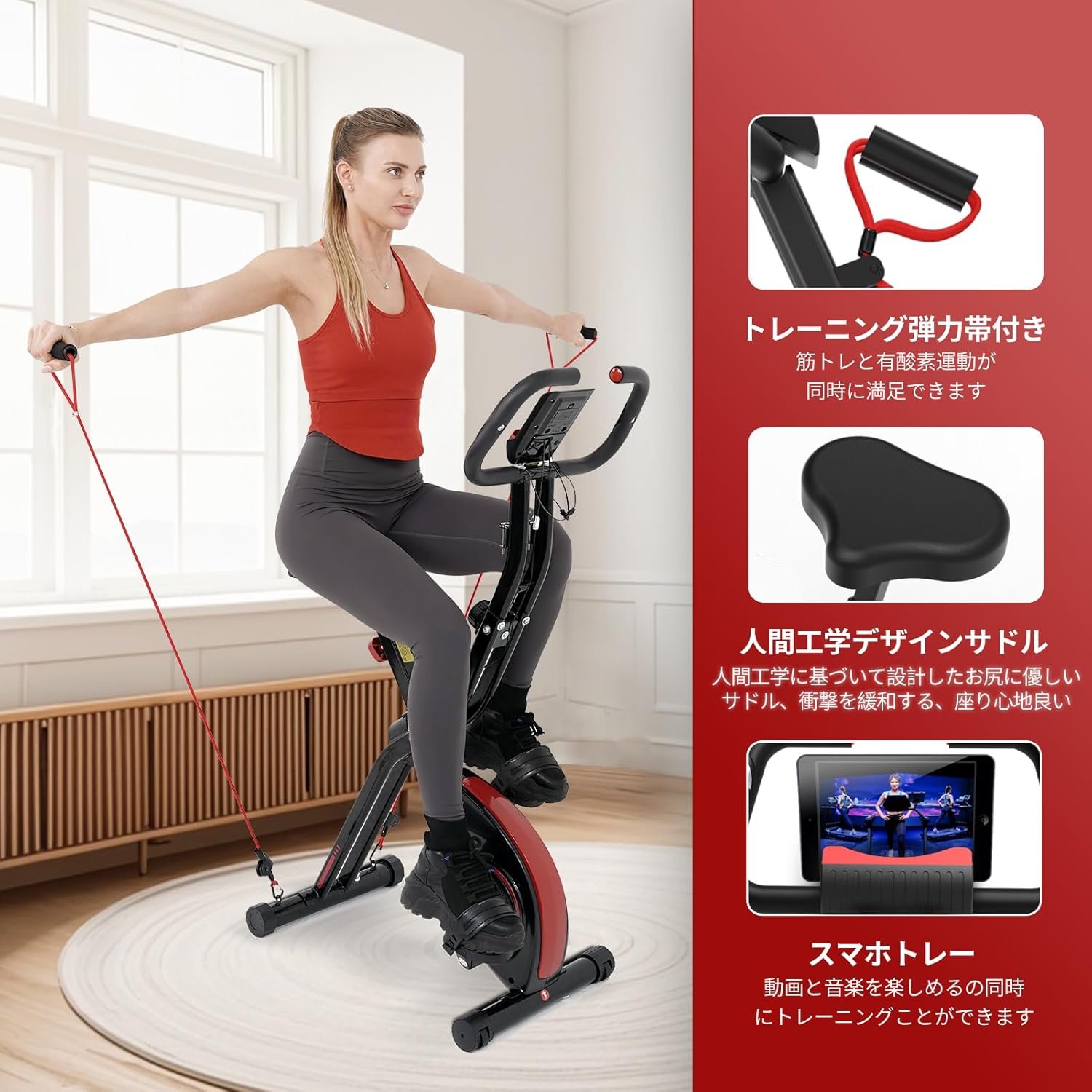 ヨロトフィットネスバイク、エクササイズバイク、家庭用、サイレント、スピンバイク、折りたたみ可能、ポータブルホルダー、トレーニングマシン、折りたたみ、フィットネス、トレーニング、バイク、フィットネス、サイクリングマシン、屋内バイク、日本