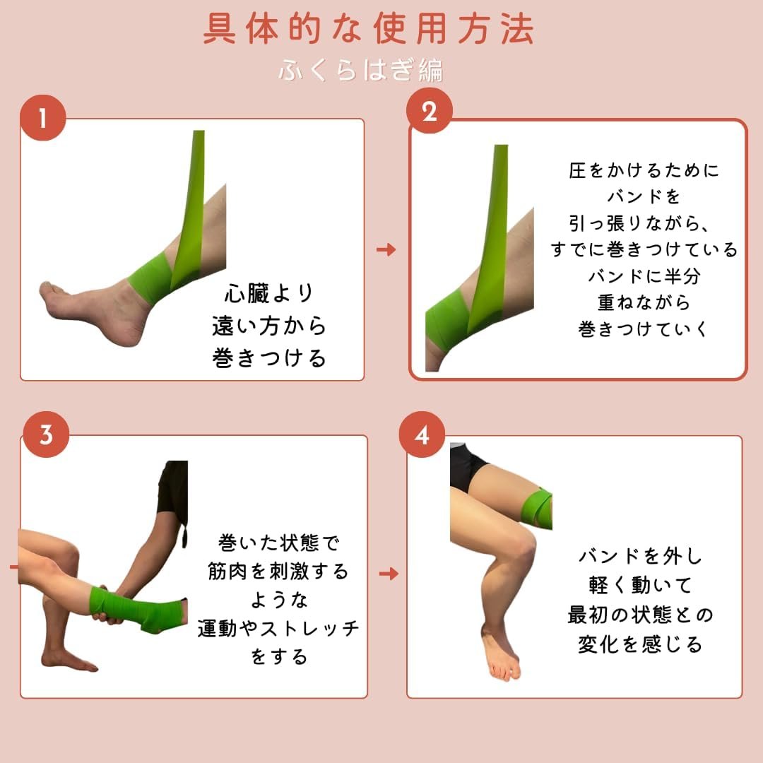 巻いた後2分間マッサージやストレッチをしてほぐしたり、