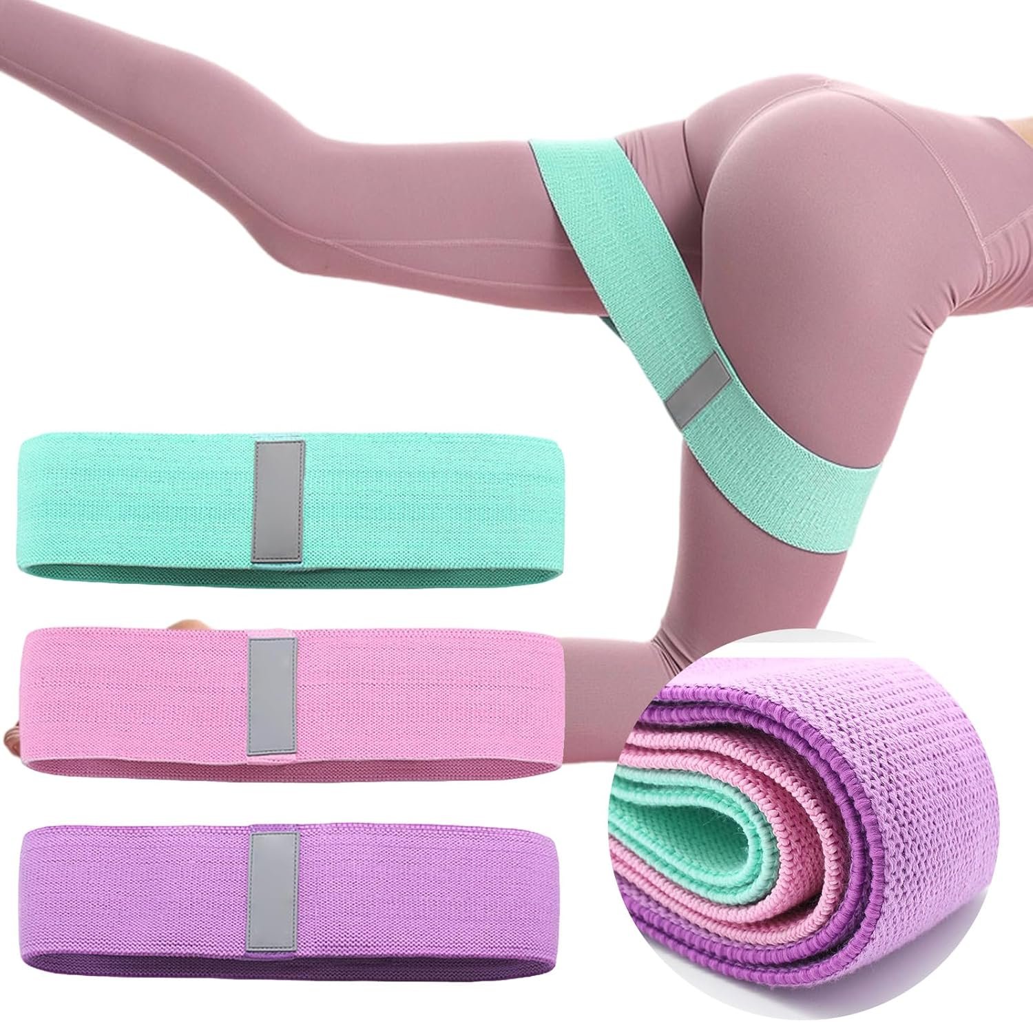 3 ピースレジスタンスバンドの弾性エクササイズバンドセットでワークアウトルーチンを強化し、ピラティス、筋力トレーニング、ジムフィットネスに最適な脚とヒップトレーニングに 3レベルの引張強度を提供します。