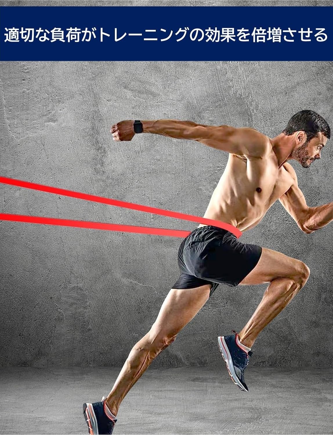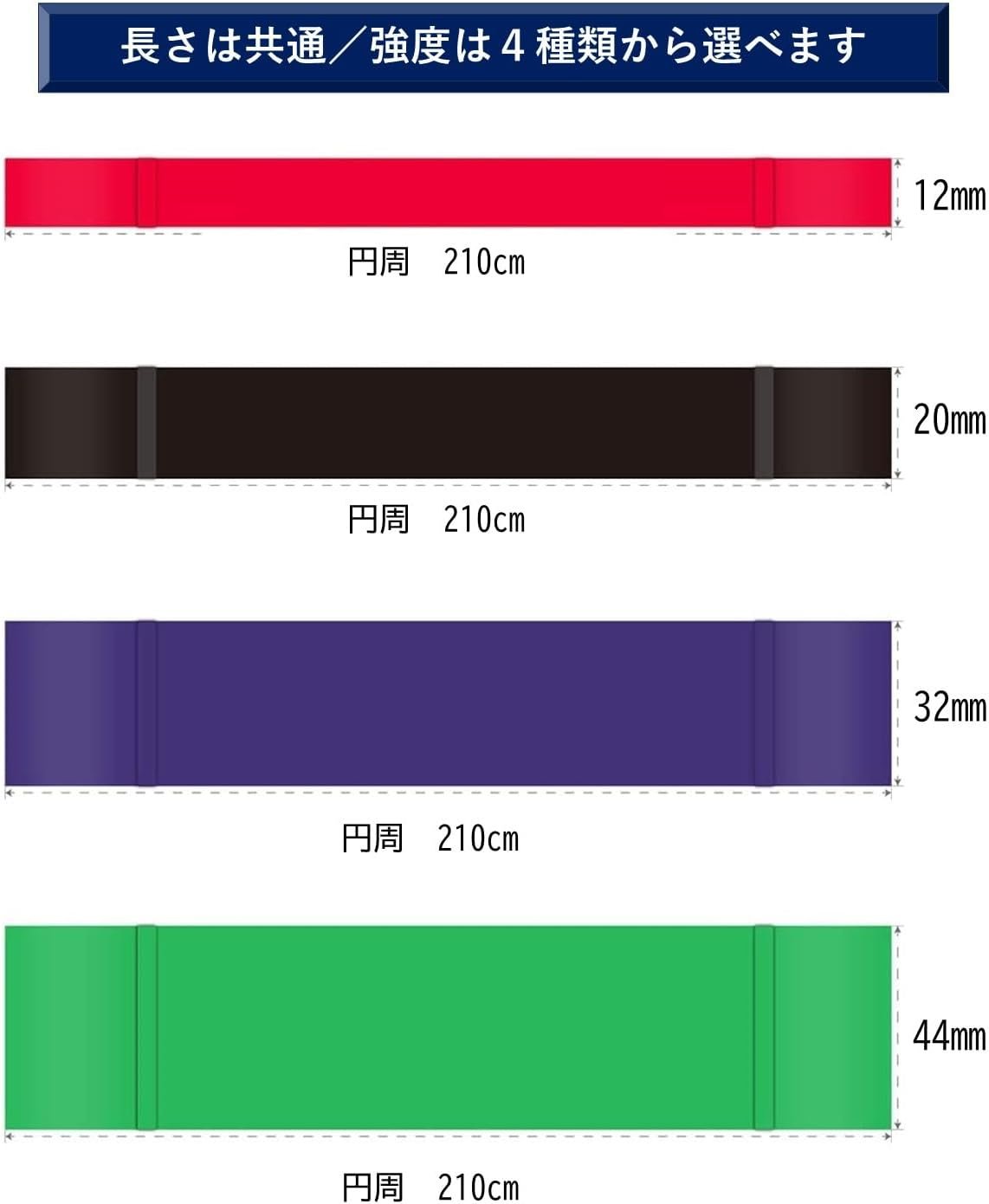 (弱)赤→黒→紫→緑(強)の4色をご用意。色で強度を区別できます。ご自身のレベルに合わせて、使い分けることでトレーニングの効果を一層高めることができます。