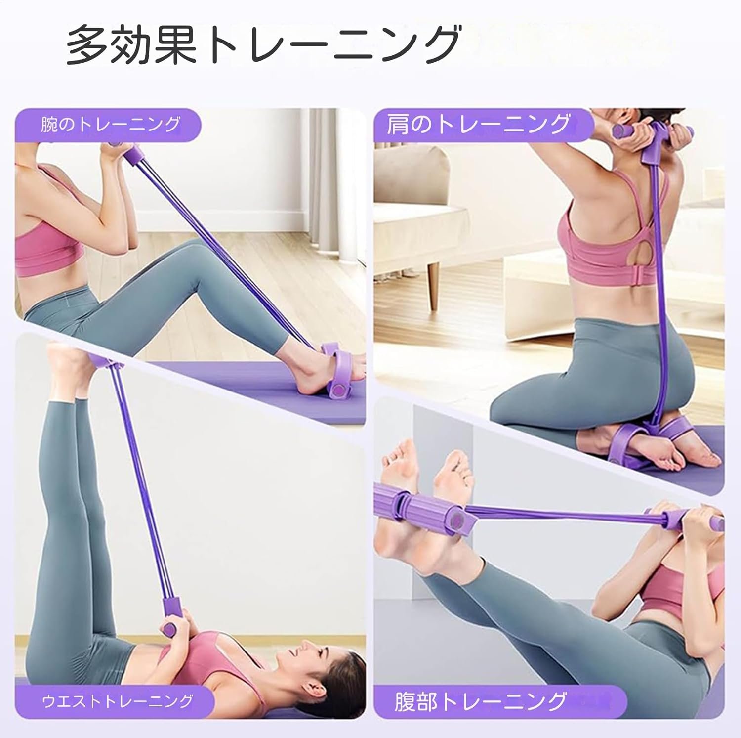 フィットネス用レジスタンスバンド、4本のチューブ付きストレッチロープエクササイズバンド| 初心者向け女性の腕と脚のトレーニングに最適な腹筋エクササイズ器具