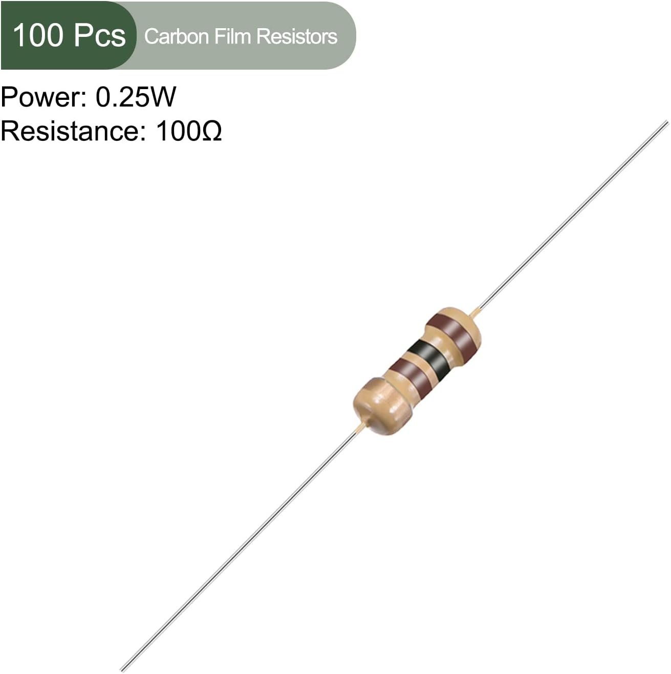 Yokive 100PCSカーボンフィルム抵抗器1/4W 100オーム5%耐性抵抗DIY電子プロジェクト4カラーバンド45×2.2mm
