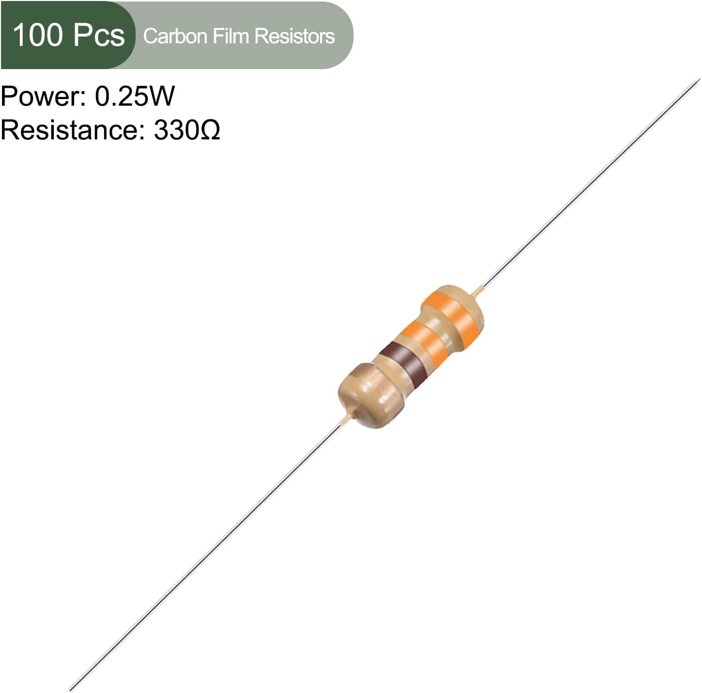 Yokive 100PCSカーボンフィルム抵抗器1/4W 330オーム5%耐性抵抗DIY電子プロジェクト4カラーバンド45×2.2mm